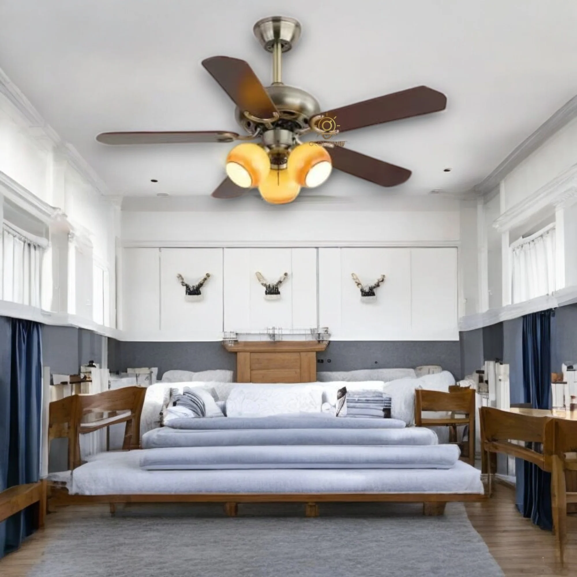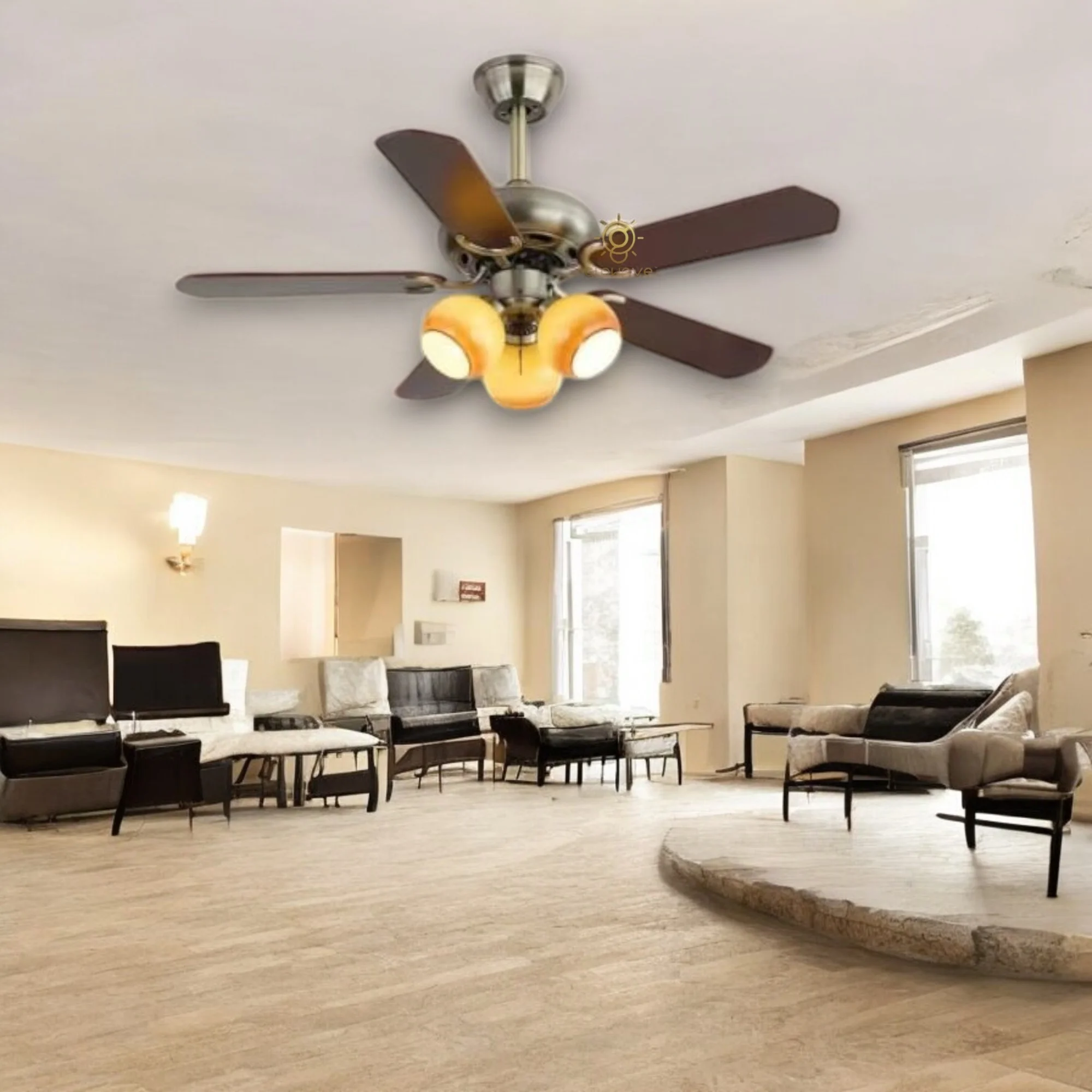 Ceiling Fan Light 42 Inch Golden Retractable Blades Remote Control - Tricolour (GD7721)