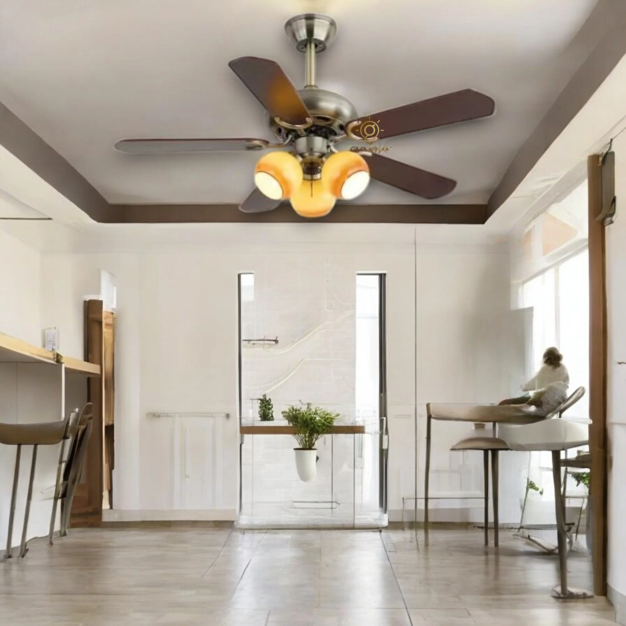 - Elegant Design: Features a durable metal body with five brown ABS blades disguised as palm leaf wooden crafted blades.