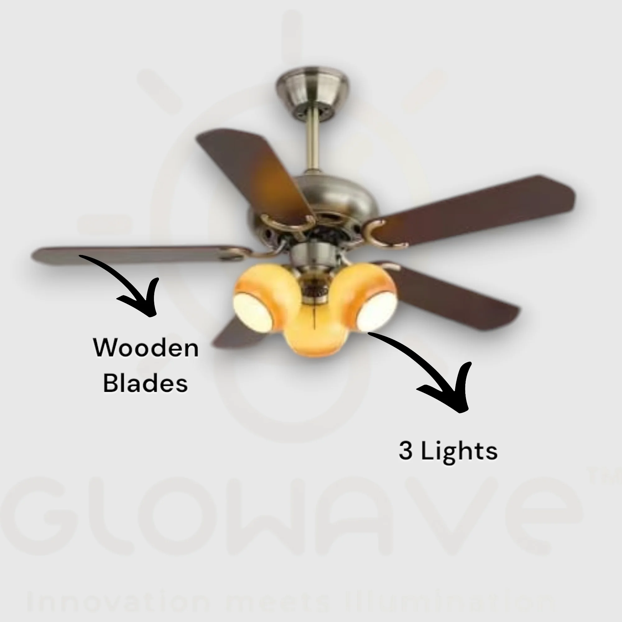 5 Brown Wooden Crafted Blades Chandelier Fan Light with Reversible Motion Remote Control
