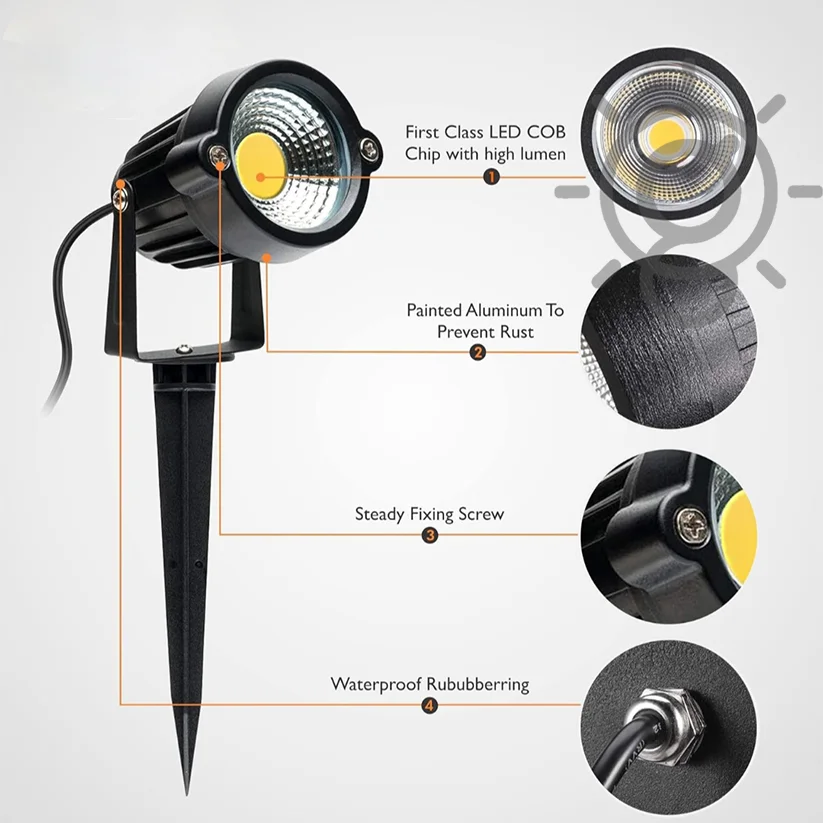 5 Watts Outdoor Aluminium Spot Spike Garden Light, Waterproof with Adjustable Head (Warm White)