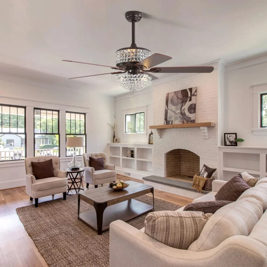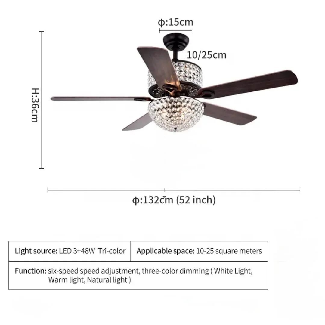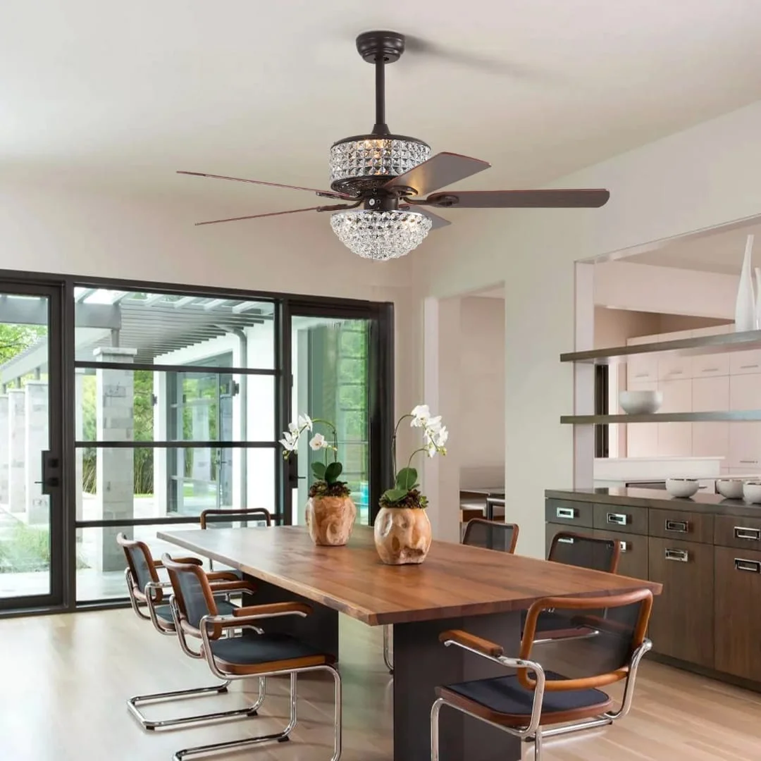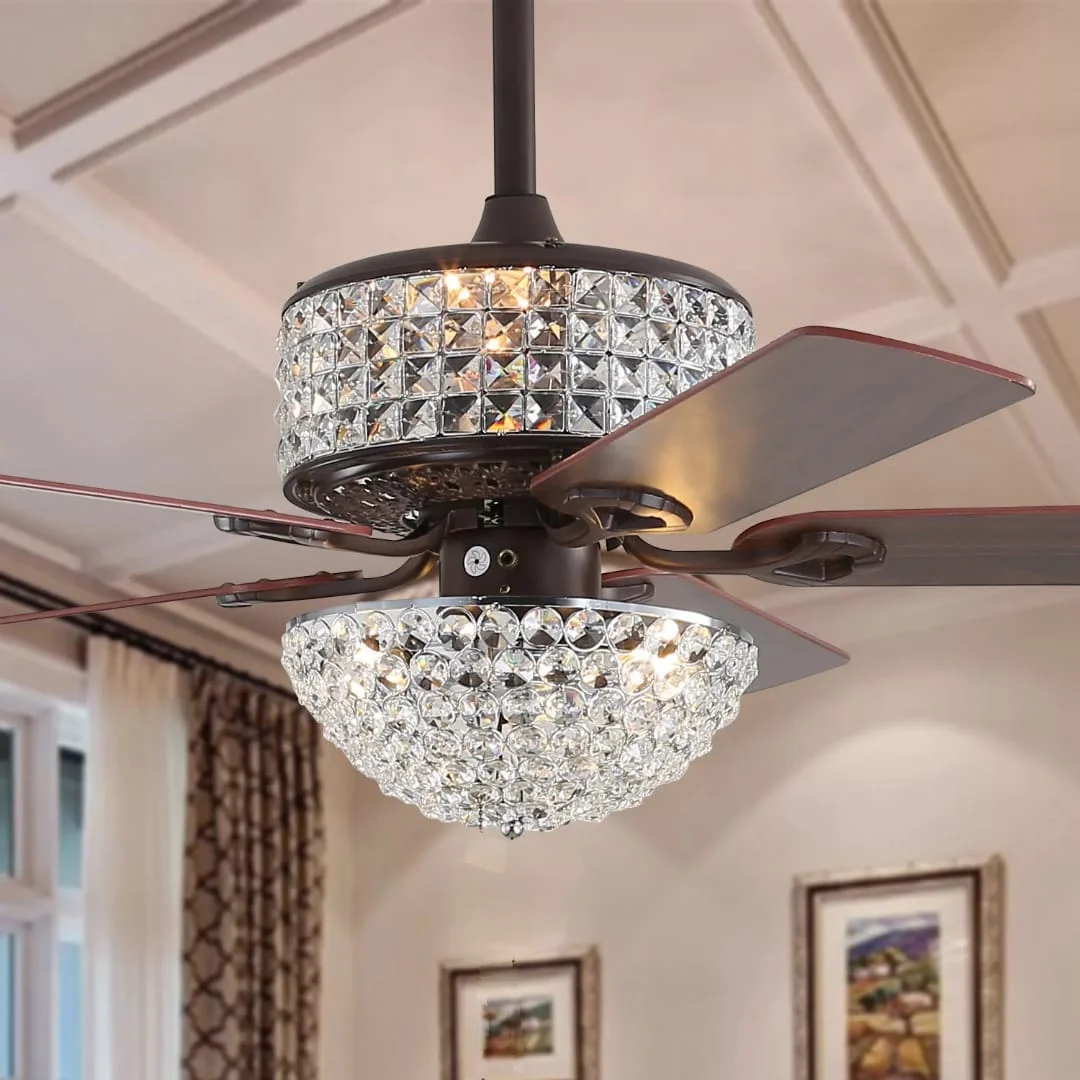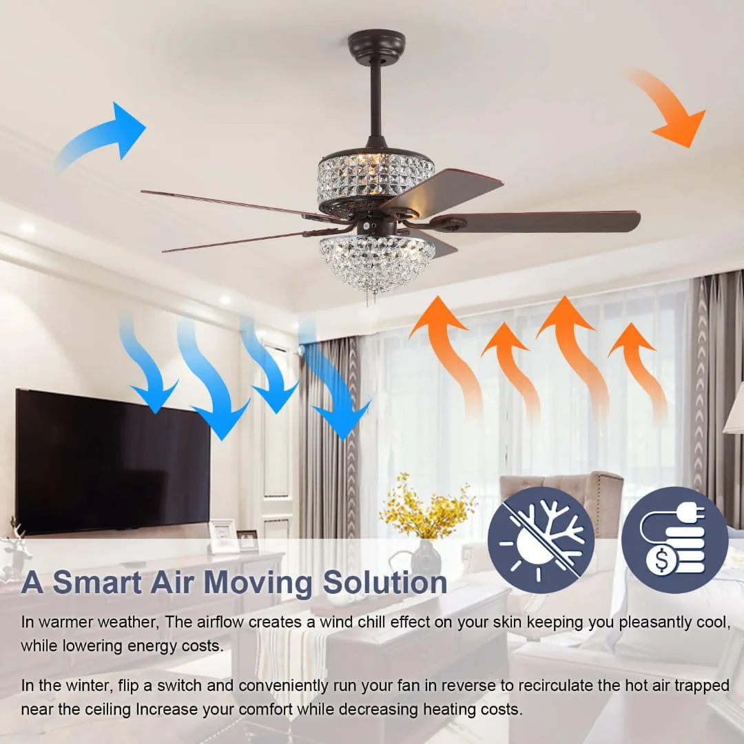 - Stylish Design: 52-inch chandelier fan with three retractable elegant crystal lights.