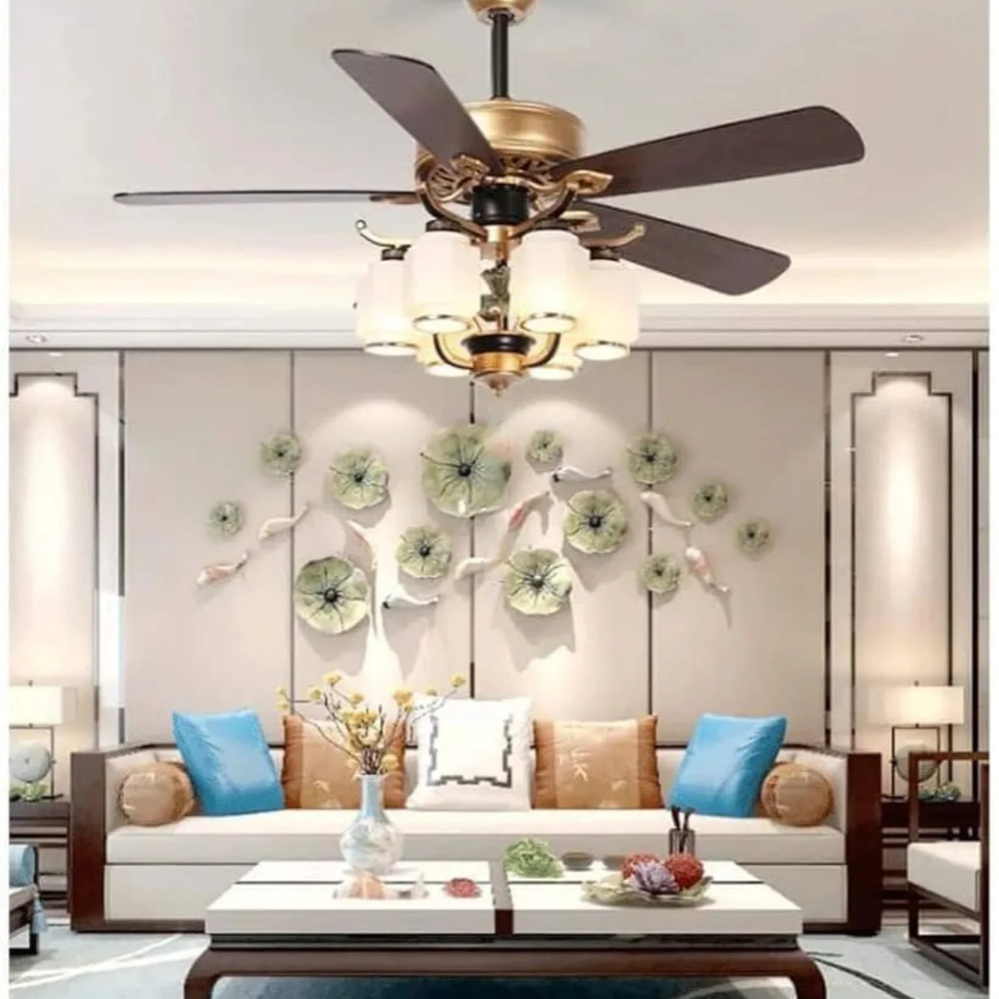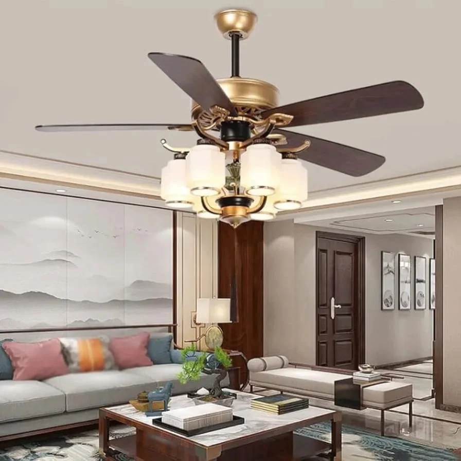 - Stylish Design: 52-inch chandelier fan with three retractable elegant glass light