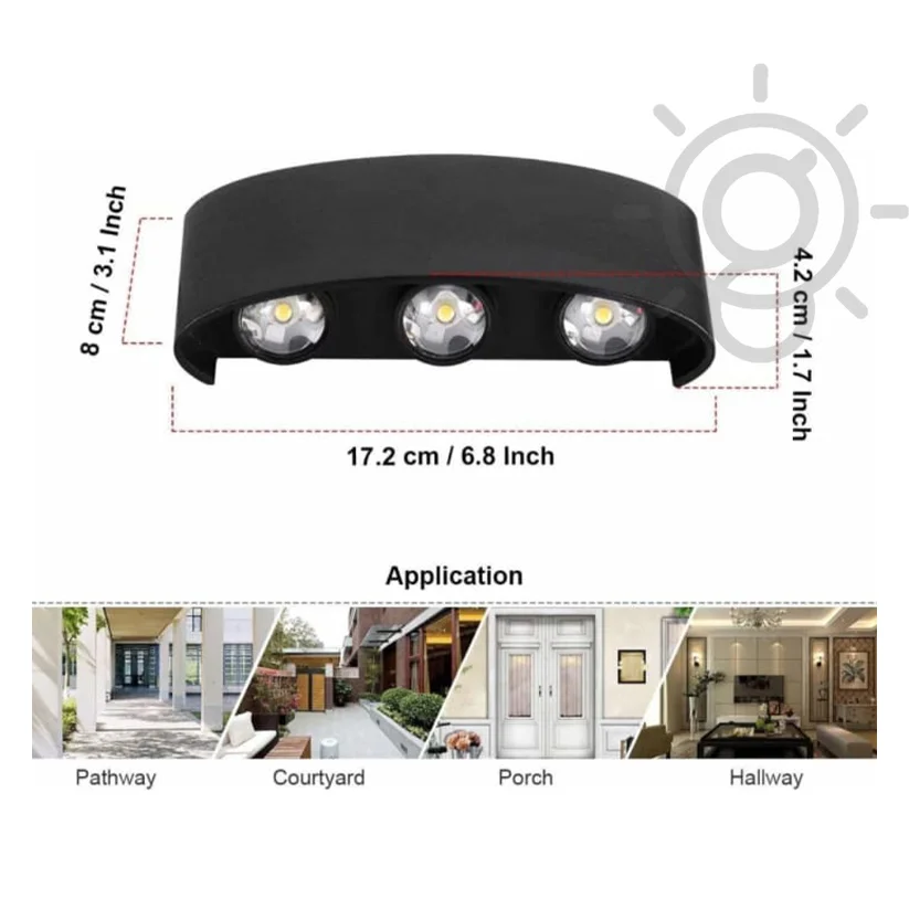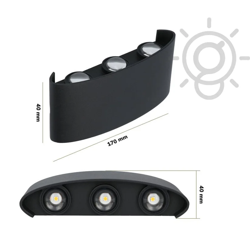 Introducing our Oval Up-Down Outdoor LED Wall Light – a stylish and functional addition to your exterior spaces. Crafted with precision, this IP65-rated fixture is designed to withstand outdoor elements while providing a vibrant and energy-efficient lighting solution. The sleek black body, made of durable aluminum, adds a touch of modern sophistication to your outdoor surroundings. This waterproof lamp is specifically engineered to illuminate your outdoor walls effectively, creating a visually appealing atmosphere. Featuring an Up-Down design, this outdoor LED wall light delivers a balanced distribution of light, enhancing the aesthetics of your modern living room or home exterior. The 3+3 Red Green Blue LED combination allows you to customize the lighting to suit your preferences, adding a splash of color to your outdoor ambiance. Perfect for both residential and commercial spaces, this Oval Up-Down Outdoor LED Wall Light is a versatile and contemporary choice. Illuminate your surroundings with style, durability, and vibrant color options. Upgrade your outdoor lighting experience with this sophisticated and waterproof fixture.