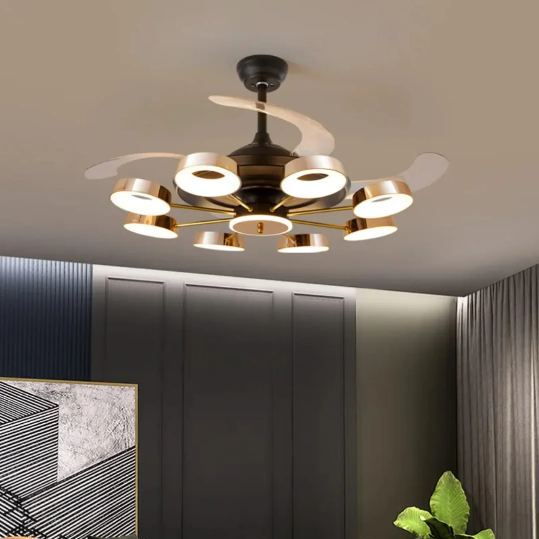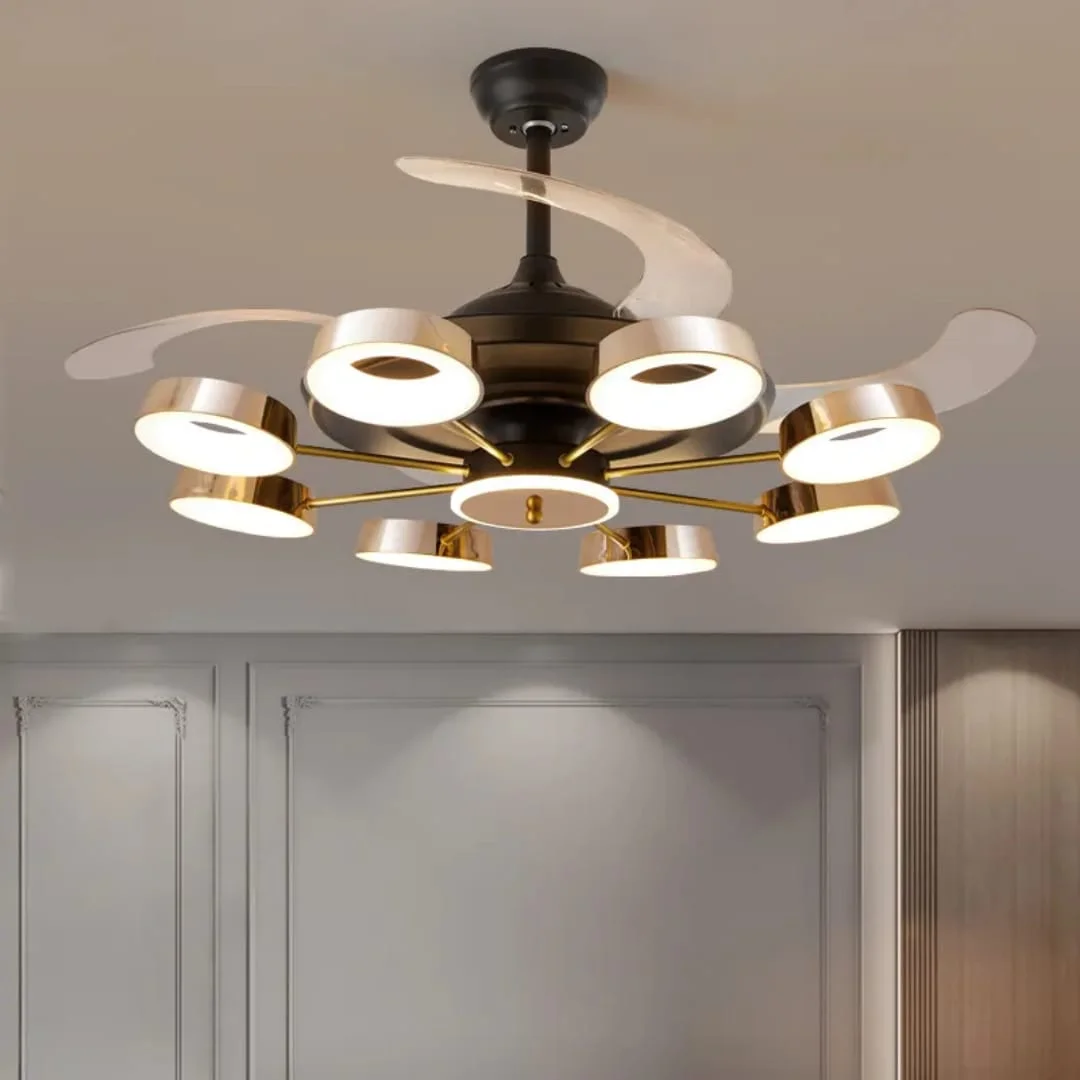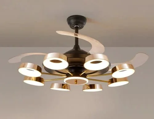 Ceiling Fan Light 42 Inch Golden Retractable Blades Remote Control - Tricolour (GD7721)