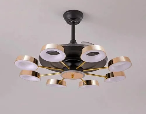 Elevate your living space with the Luxury Black Glass Ceiling Fan Chandelier. This stunning retractable fan lighting fixture features a sophisticated design with Frosted Balls accents, adding a touch of luxury to any room. With three adjustable color lights, it seamlessly adapts to your desired ambiance. Ideal for living rooms, bedrooms, dining areas, entrances, showrooms, and cafés, this versatile chandelier combines style and functionality. The retractable blades provide efficient air circulation when extended and a sleek, unobtrusive look when retracted. Enjoy a blend of elegance and practicality with this exquisite ceiling fan chandelier.