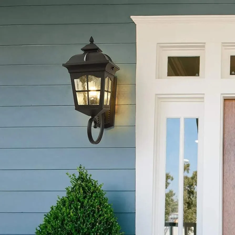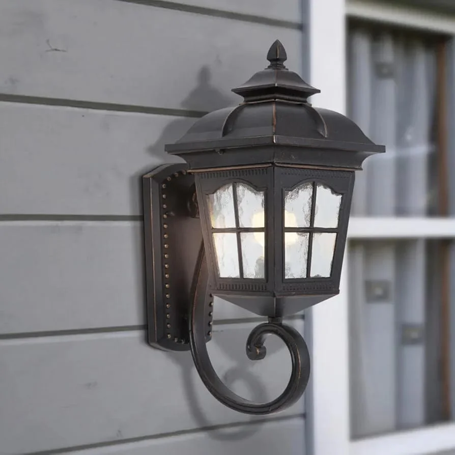- Made of durable die-cast aluminum lamp body and glass shed body.