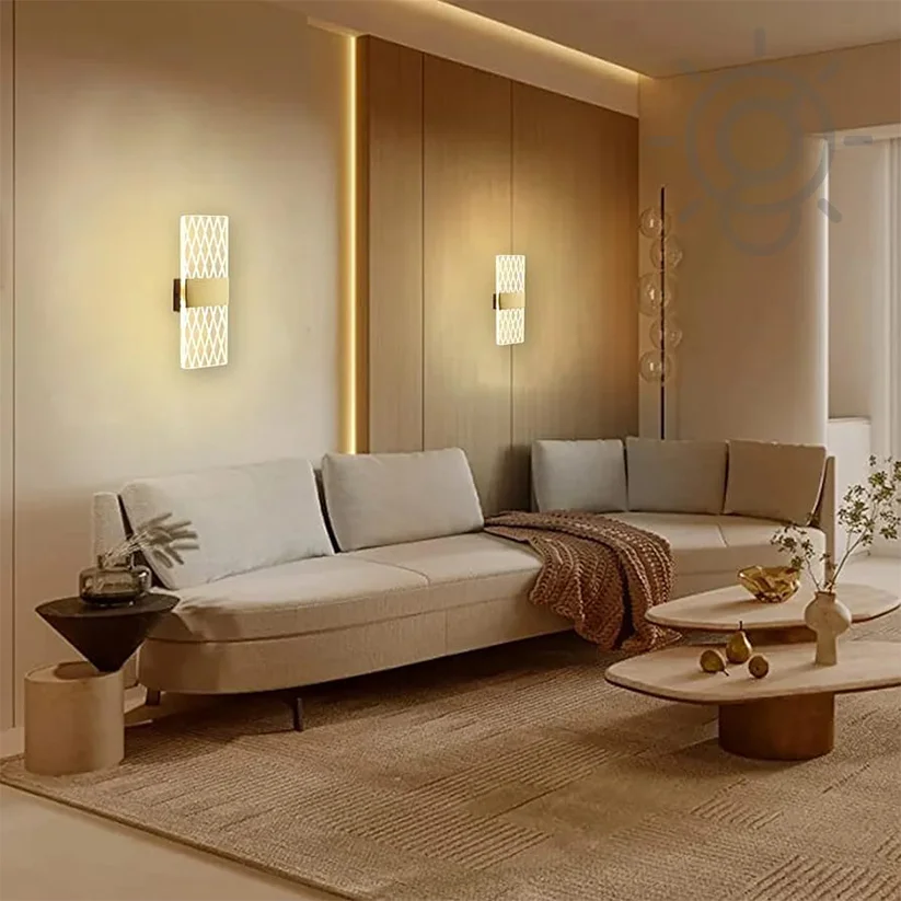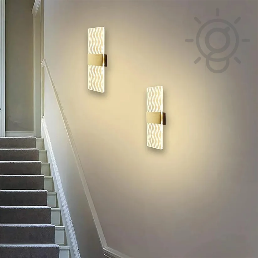- Modern Acrylic Grid Pattern Rectangular Golden LED Wall Lamp