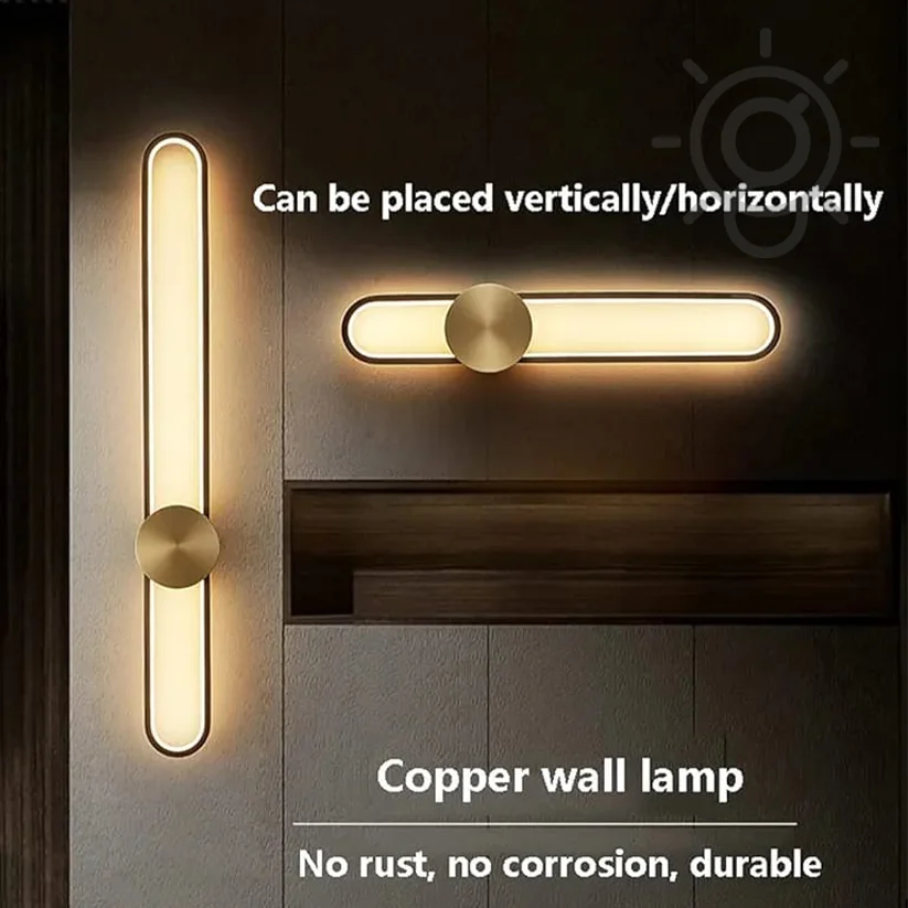 All Gold 600mm Simple All Copper LED Long Tube Wall Light - Tricolour