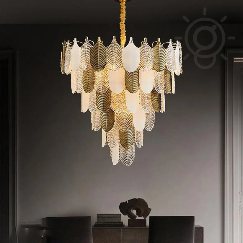 Enhance your home with the elegant White, Clear Glass Leaf Chandelier. This modern chandelier light fixture features a 500mm diameter adorned with beautiful blue glass leaves, offering a striking blend of artistry and functionality. Emitting a warm white glow, it creates a cozy and inviting atmosphere, perfect for living rooms, bedrooms, kitchen islands, hotels, and entryways. Crafted with high-quality materials, this chandelier is designed for durability and long-lasting beauty. Elevate your interior décor with this exquisite chandelier and experience the perfect combination of style and illumination.