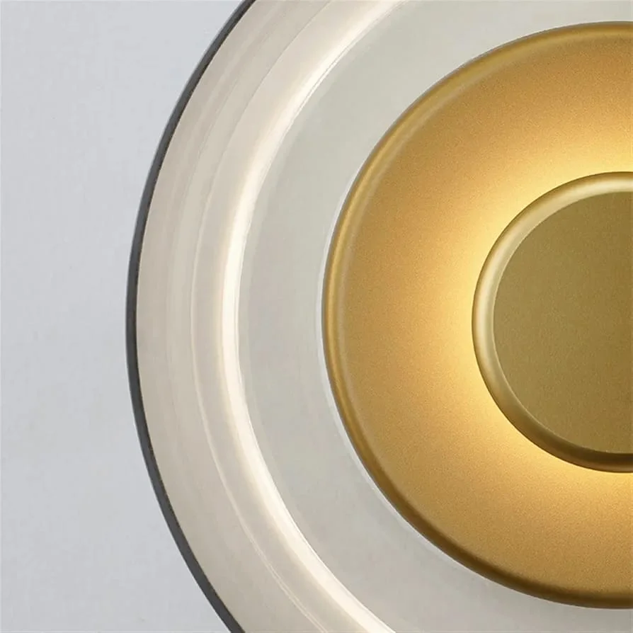 - Stylish Design: Gold finish with a amber glass circular shape wall decor lamp.