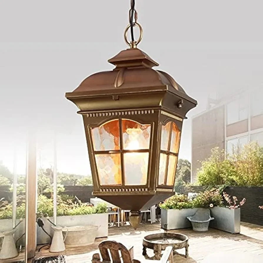 Elevate your outdoor spaces with timeless elegance using our Outdoor Decorative Antique Brass Finish Pendant Hanging Light. Crafted with a vintage-inspired antique brass finish and clear glass enclosure, this hanging ceiling lamp exudes charm and sophistication—perfect for patios, porches, doorways, or cafés. The warm white glow creates a welcoming ambiance, making it ideal for cozy evenings and stylish gatherings. Designed for durability as well as style, this weather-resistant pendant light combines classic aesthetics with modern reliability. Whether enhancing the rustic charm of your café or adding a touch of vintage luxury to your home exterior, this piece is a standout feature day or night.
