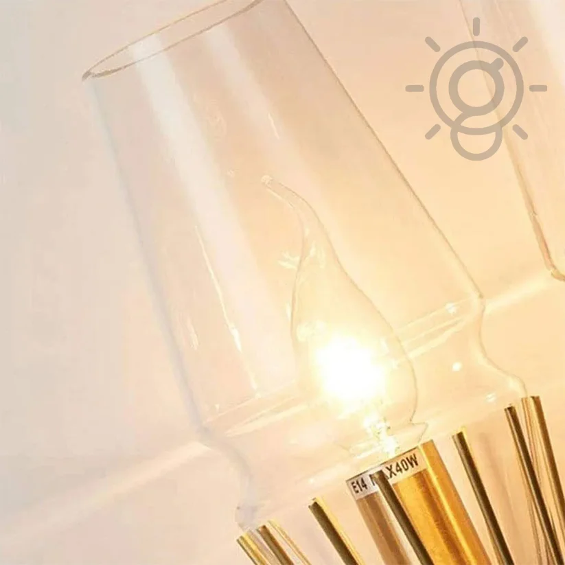 Stylish Design: Antique Gold Finish Wall Sconce. Requires E14 bulb (not included). Enhanced Ambiance: Perfect for creating a cozy or elegant atmosphere. Easy installation and energy-efficient LED technology. Multi-Use: Ideal for living rooms, bedrooms, and bedside areas. Antique Gold Finish Metal Body and Clear Glass Lampshade.