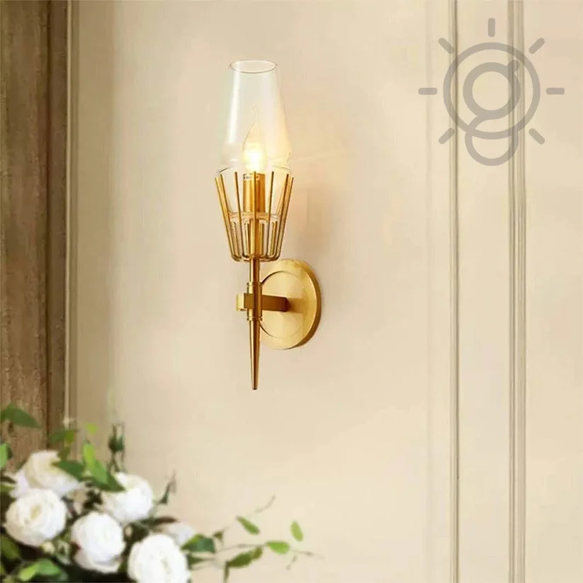 Enhance your home decor with the Antique Gold Finish Clear Glass Vintage Wall Lamp. This exquisite sconce fixture, perfect for living rooms, bedrooms, and bedsides, boasts a timeless antique brass finish and clear glass design. It casts a warm white light, creating a cozy and nostalgic atmosphere. Note: Bulb not included. Ideal for adding vintage charm to any space.