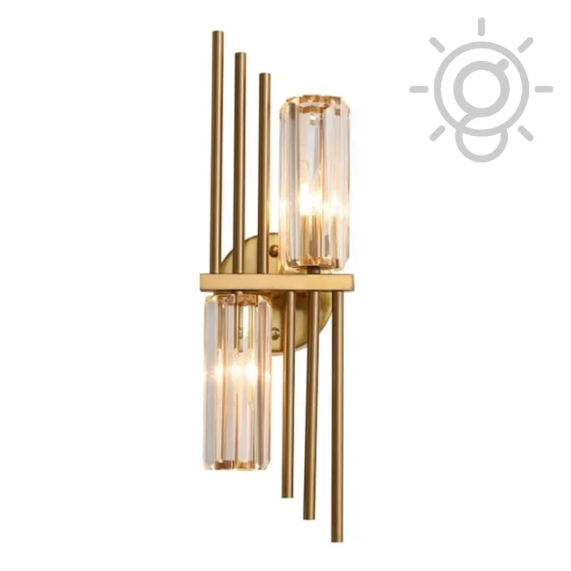 Antique Gold Finish Crystal Up Down Vintage Light Wall Lamp - Warm White