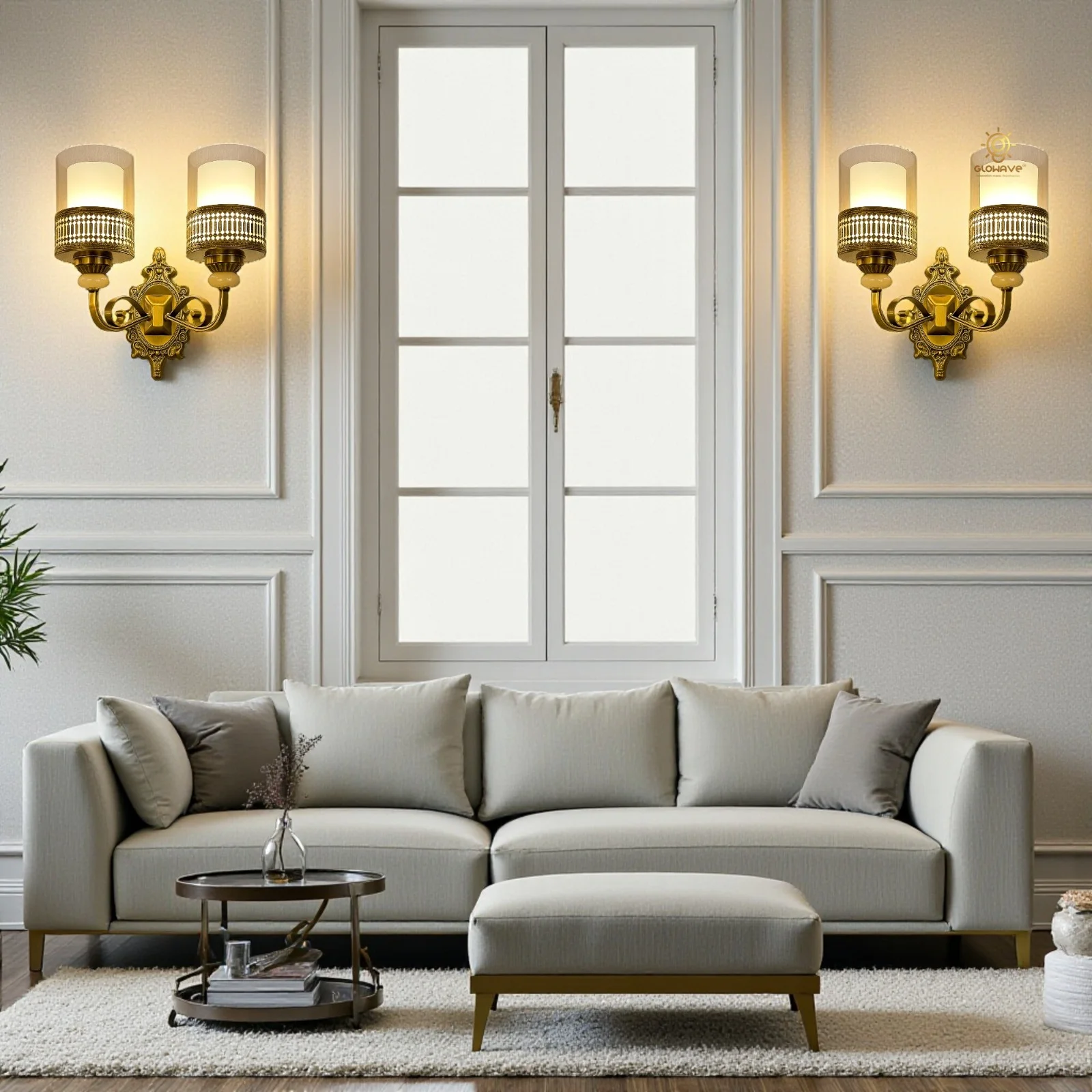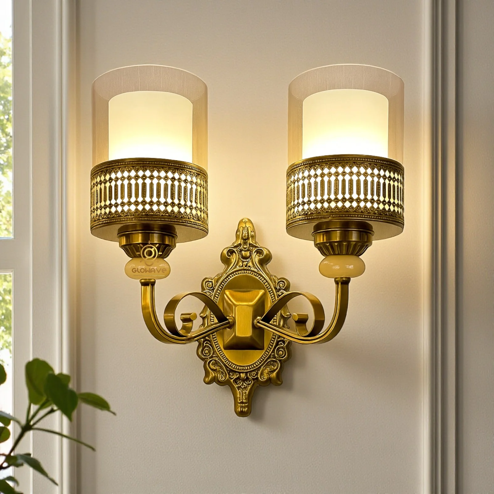 Antique Gold Finish Dual Head Wall Lamp - Warm White