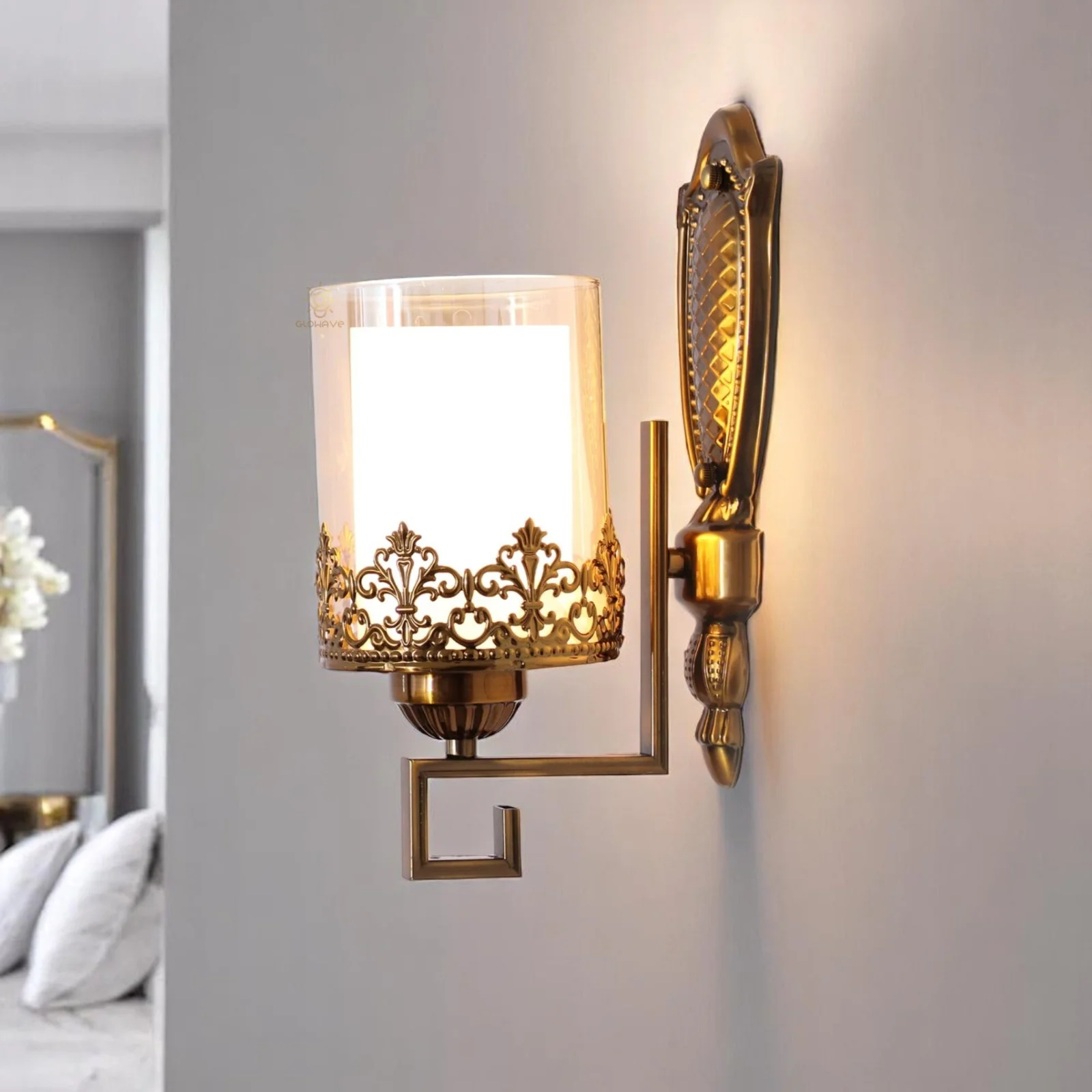 Enhance your home decor with the Antique Gold Finish Clear Glass Vintage Wall Lamp. This exquisite sconce fixture, perfect for living rooms, bedrooms, and bedsides, boasts a timeless antique brass finish and clear glass design. It casts a warm white light, creating a cozy and nostalgic atmosphere. Ideal for adding vintage charm to any space.