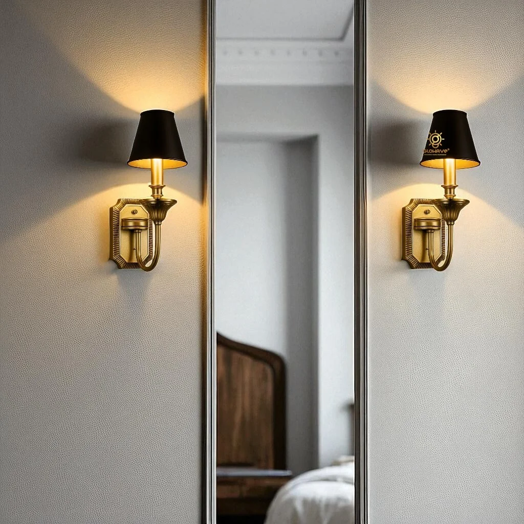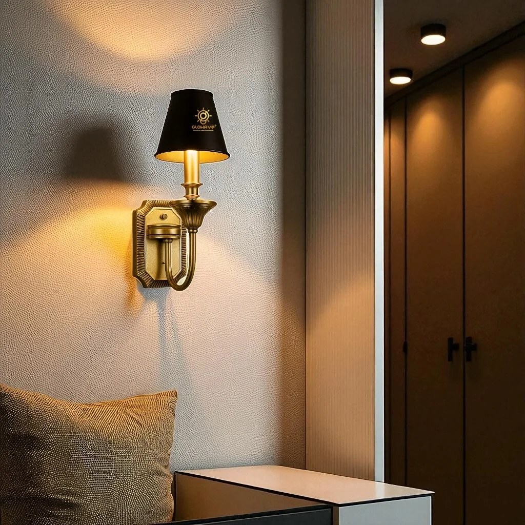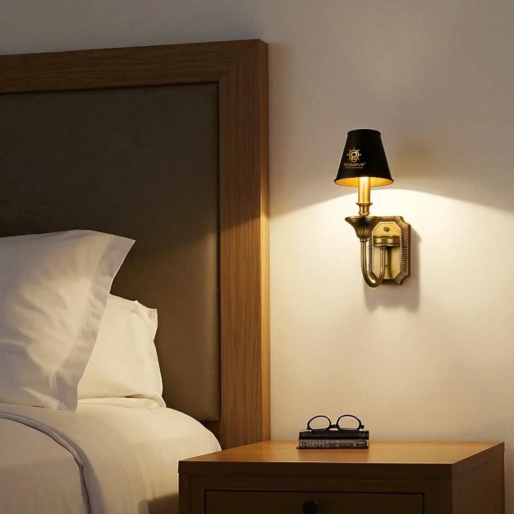 Antique Golden Metal Body Black Fabric LampShade Wall Lamp - Warm White (1902/1W)