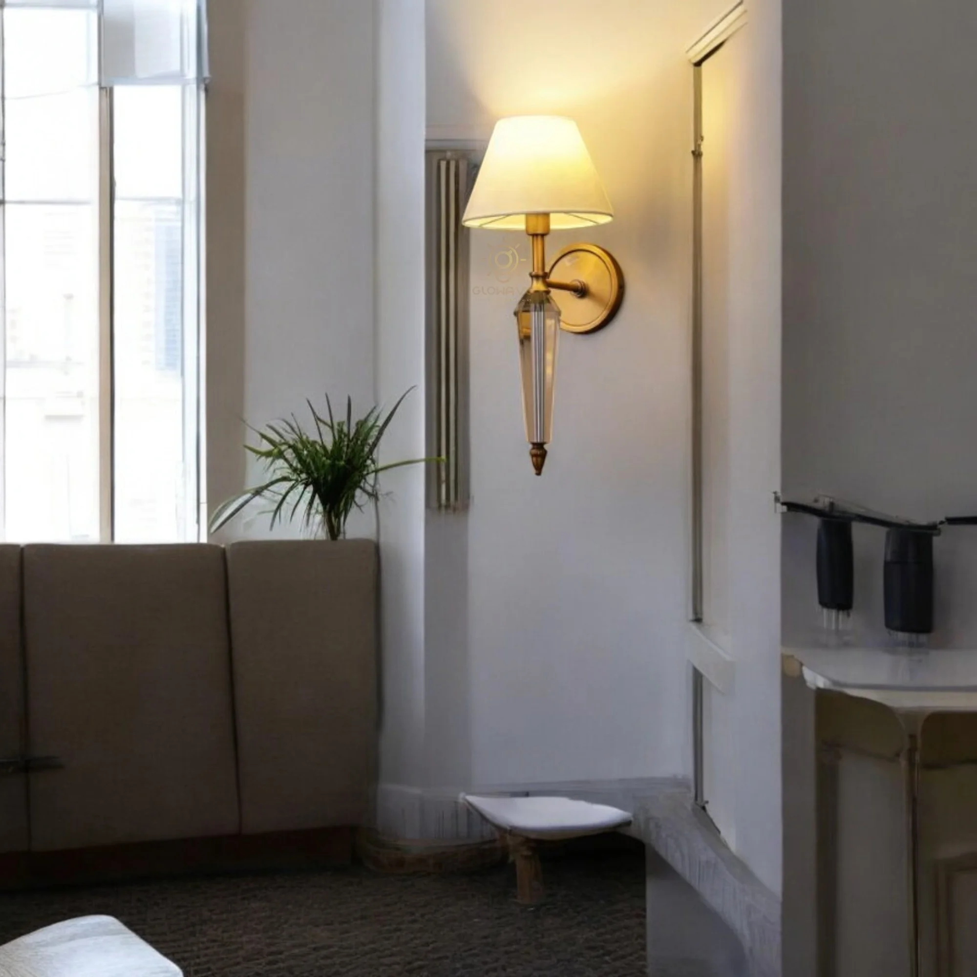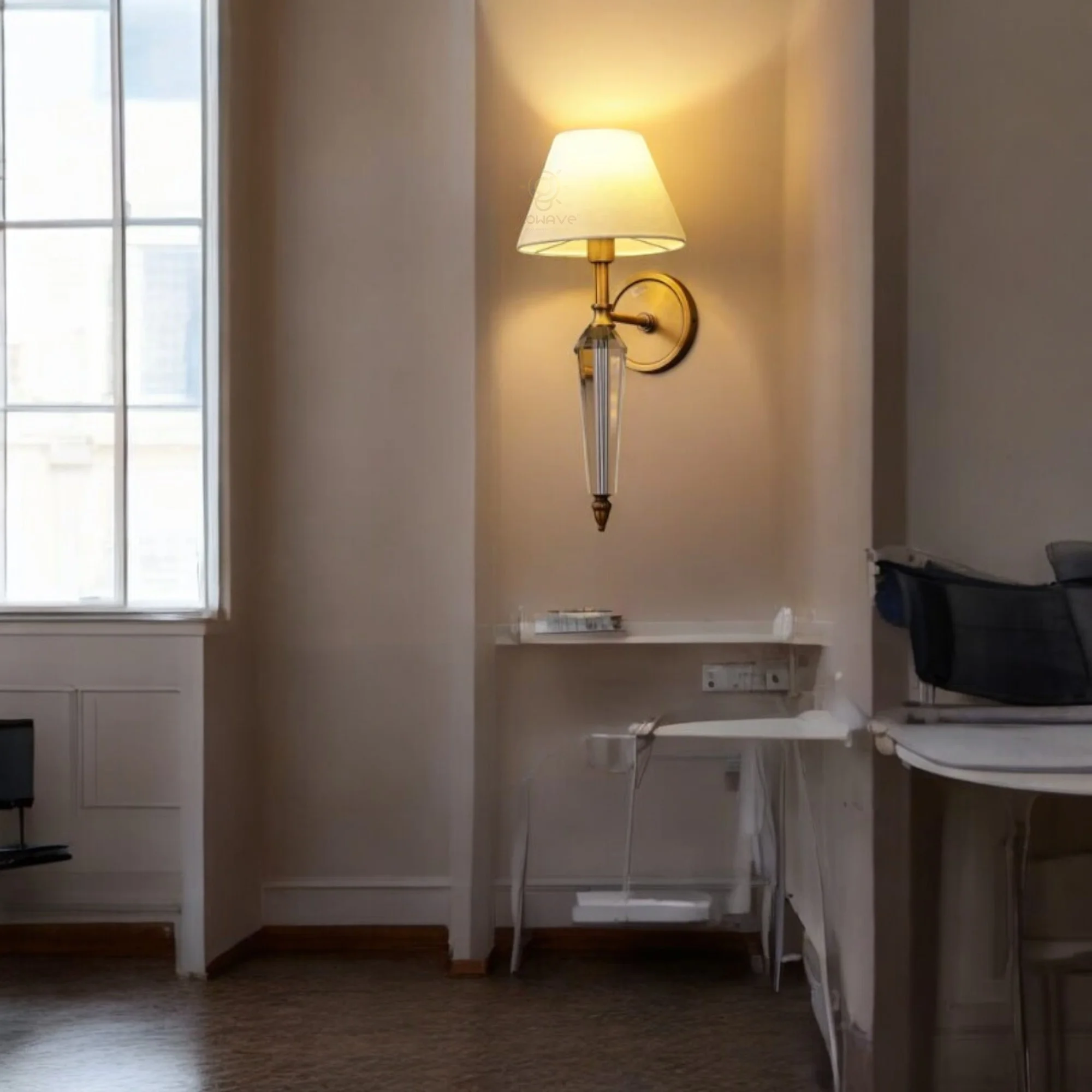 - Stylish Design: Antique Vintage Fabric Shade Electroplated Brushed Brass Finish Wall Sconce.