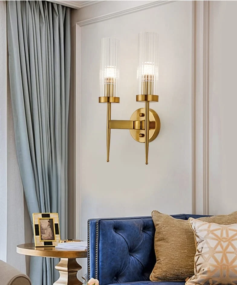 Enhance your home decor with the Antique Gold Finish Clear Glass Vintage Wall Lamp. This exquisite sconce fixture, perfect for living rooms, bedrooms, and bedsides, boasts a timeless antique brass finish and amber glass design. It casts a warm white light, creating a cozy and nostalgic atmosphere. Ideal for adding vintage charm to any space.