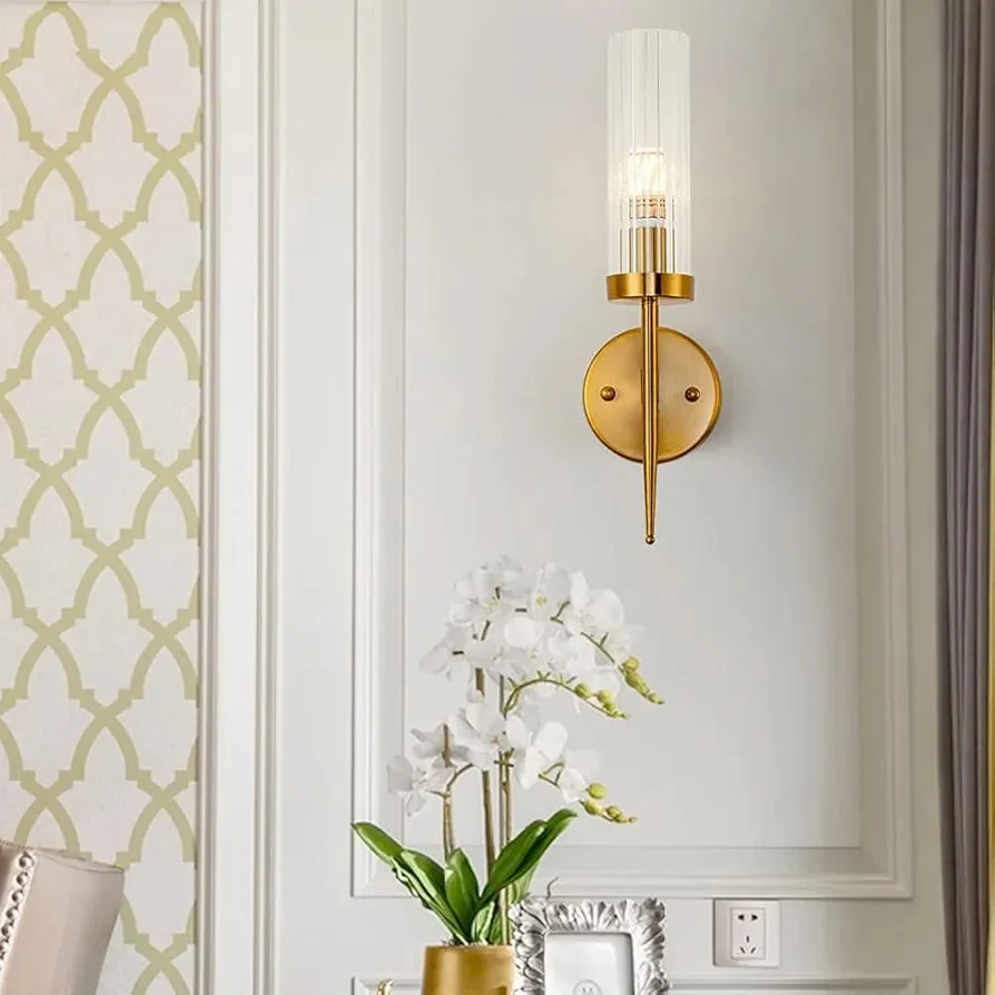 Enhance your home decor with the Antique Gold Finish Clear Glass Vintage Wall Lamp. This exquisite sconce fixture, perfect for living rooms, bedrooms, and bedsides, boasts a timeless antique brass finish and amber glass design. It casts a warm white light, creating a cozy and nostalgic atmosphere. Ideal for adding vintage charm to any space.