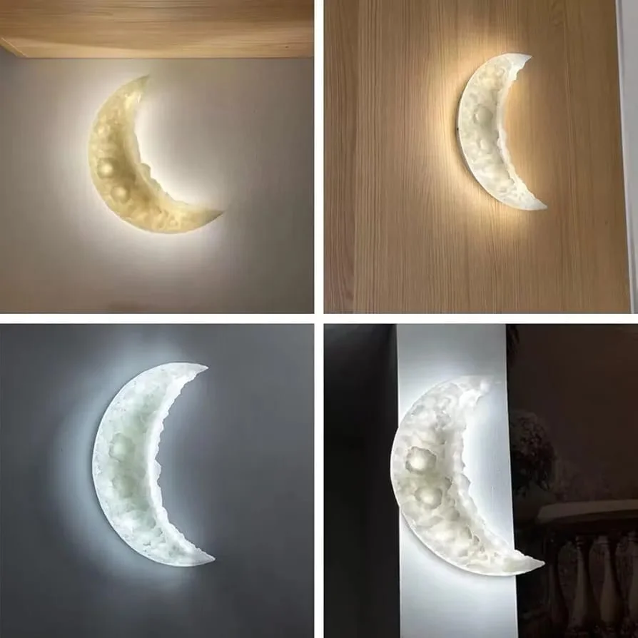 Attractive 3D Rough Half Moon Resin Wall Lamp - Tricolour (Half Moon 9368-1)