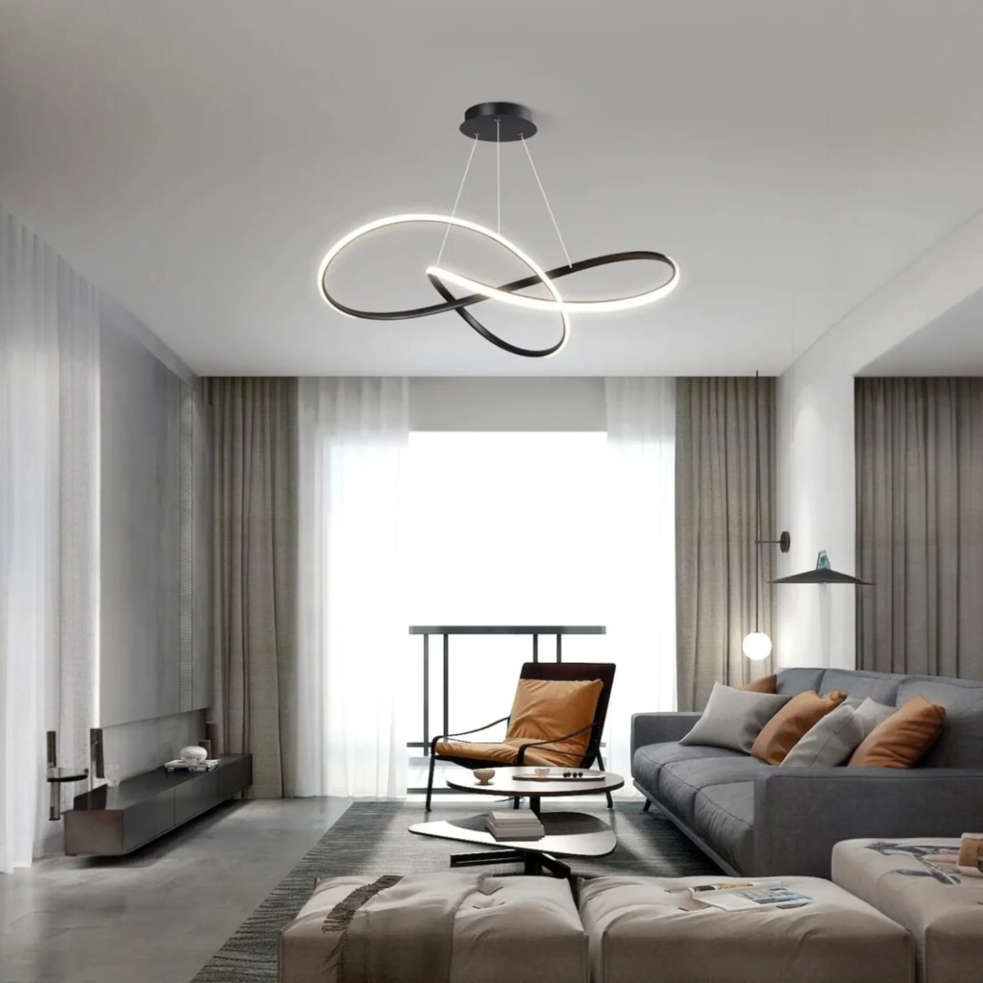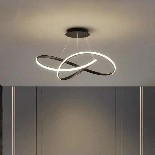 Black LED Wavy Metal Profile Light Pendant Chandelier - Tricolour