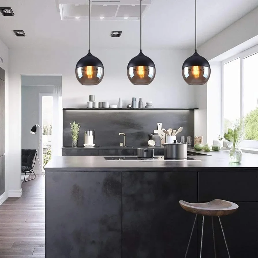 European Golden Smoky Glass Set of 3 Pendant Hanging Light - Warm White