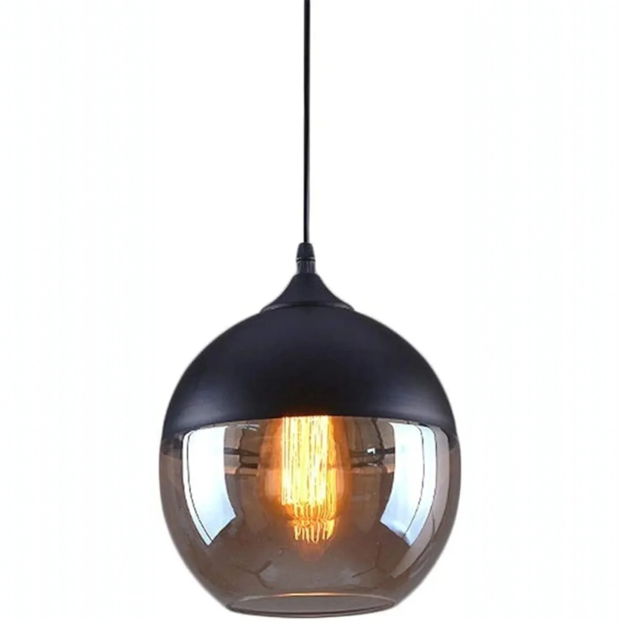 Black Finish Amber Glass Pendant Hanging Light - Warm White