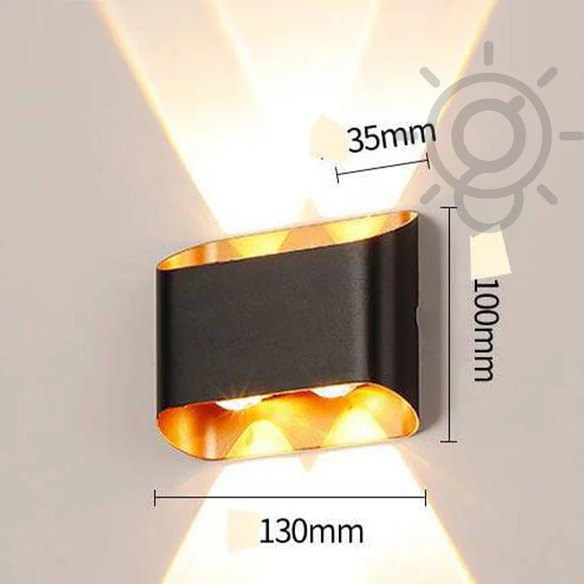 Black Golden LED Outdoor Aluminium Wall Light Waterproof Wall Lamp - Warm White (4 Watts)