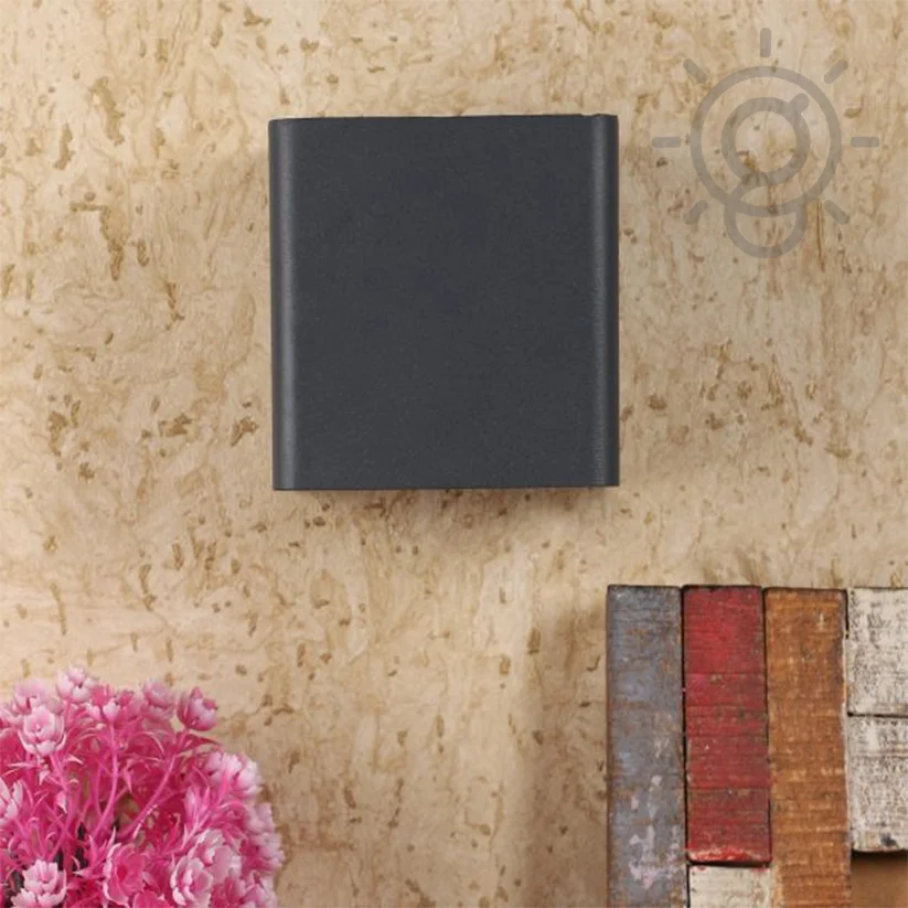 Black LED 2 Way Up Down Wall Scone Square Aluminium Wall Light - Trichromatic