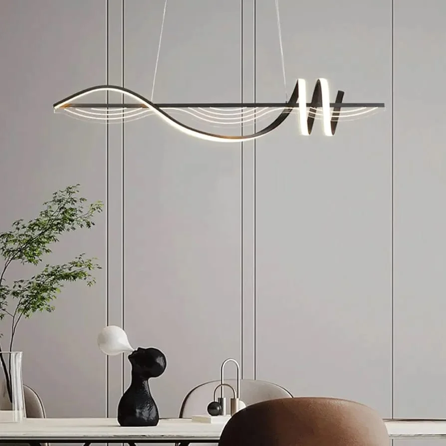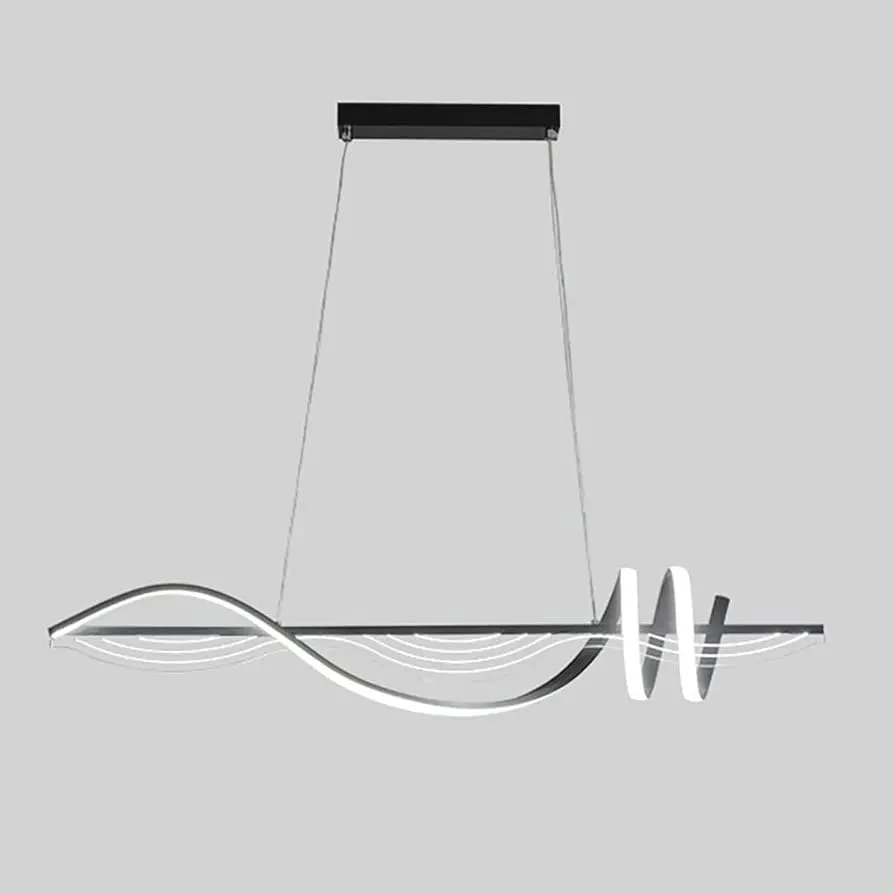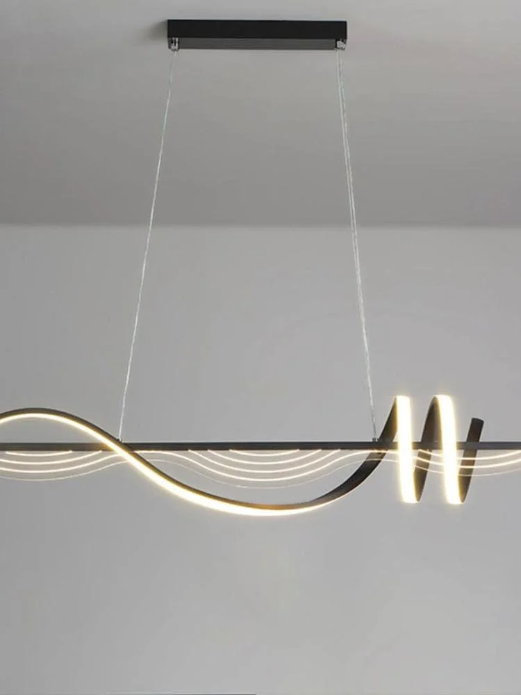 Black LED Wavy Metal Profile Light Pendant Chandelier - Tricolour
