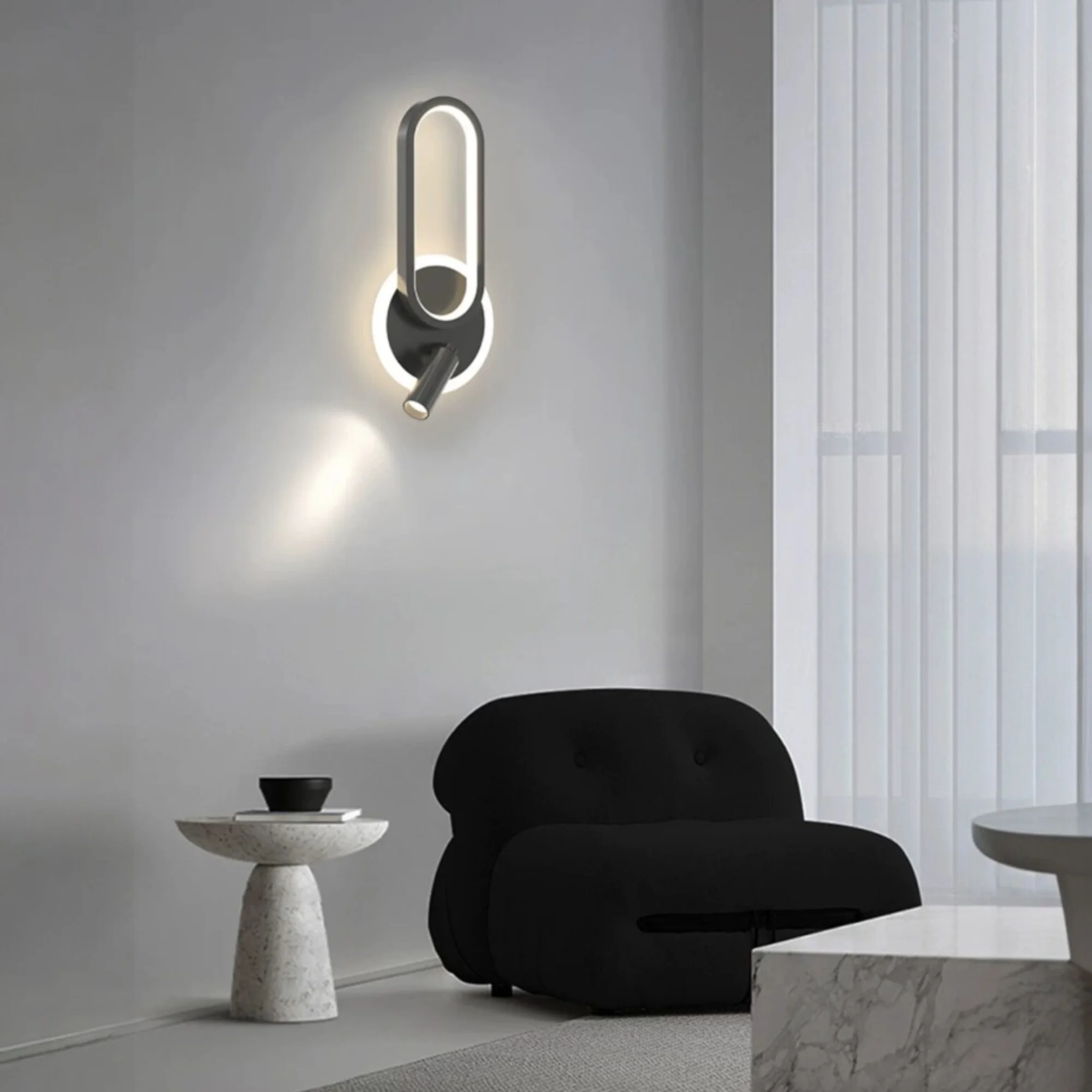 Illuminate your living space with the Modern Circular Shape Black LED Wall Lamp. This sleek and sophisticated spot light is designed to enhance your living room, bedroom, or bedside with its elegant Black finish. Featuring a versatile tricolour LED, you can easily switch between white, warm white, and natural white lighting to suit your mood and needs. Perfect for creating a cozy atmosphere or adding a touch of modern elegance, this 9W lamp offers both style and functionality in one stunning package.