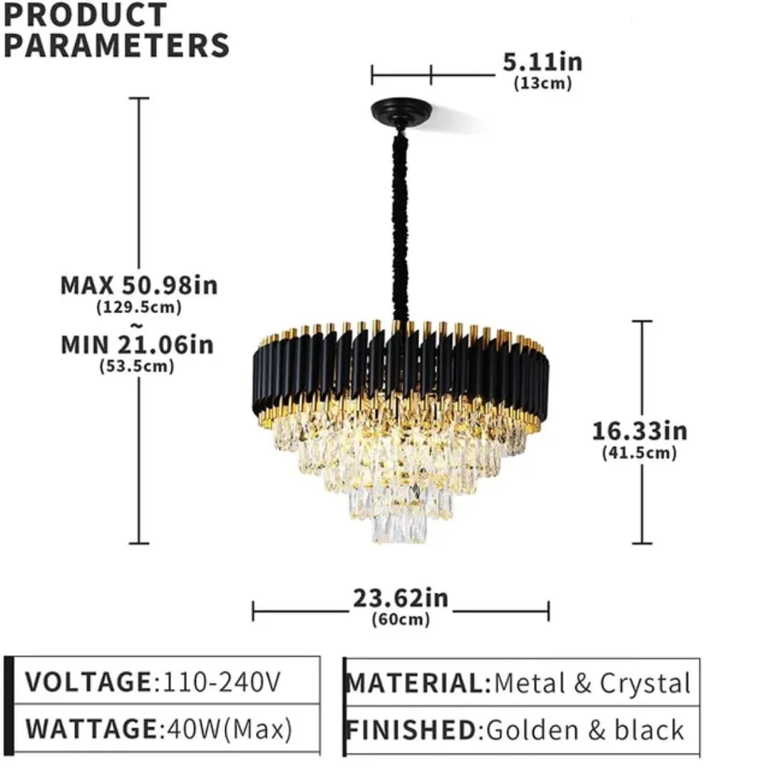 Black Mamba Metal Body with K9 Crystal Chandelier - Tricolour (600 mm)
