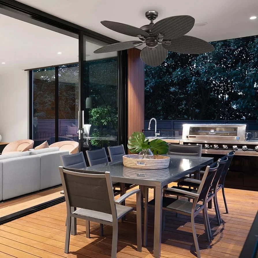 Metal Body 5 Beige Palm Leaf Wooden Textured ABS Blades Ceiling Fan (FI-7732)