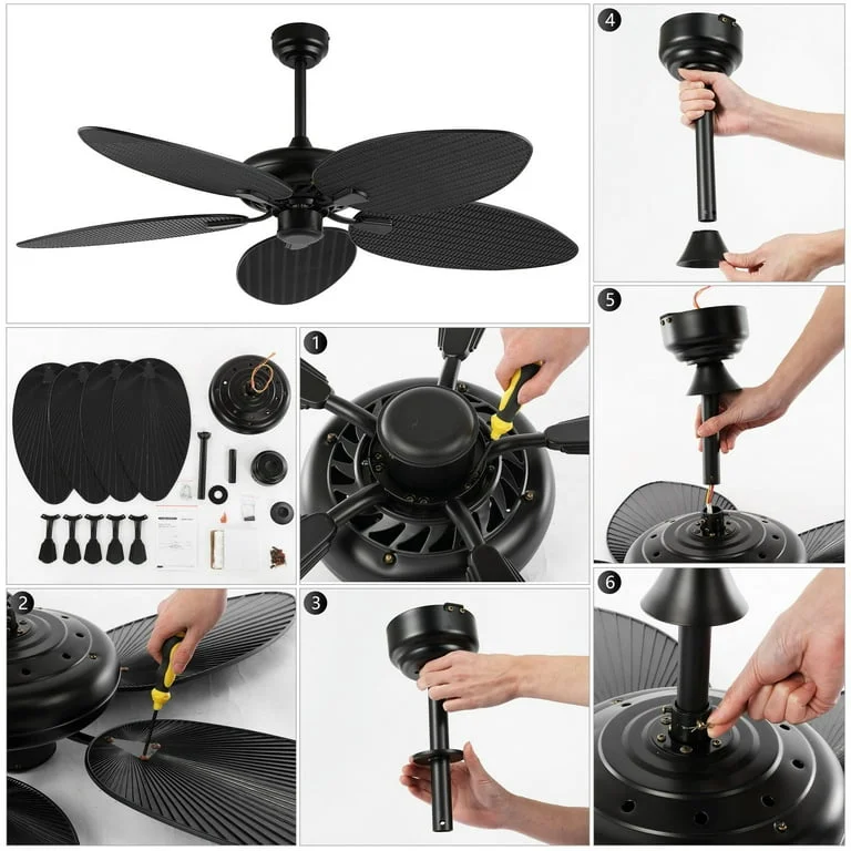 - Metal body Black fan, and ABS fan blades with copper binding motor chandelier.