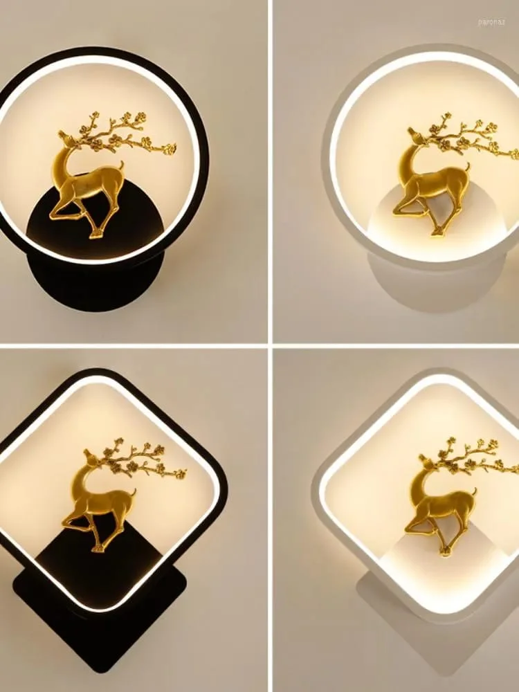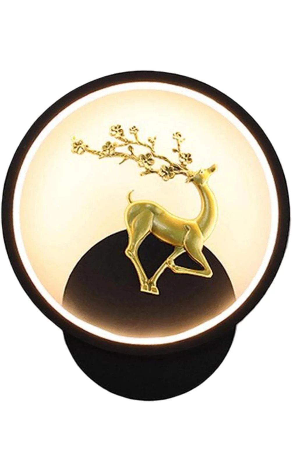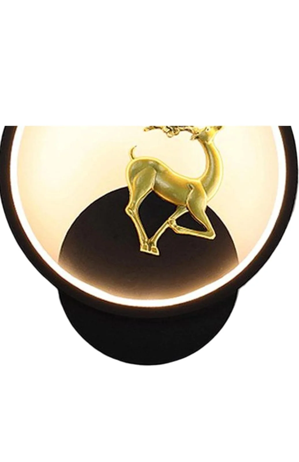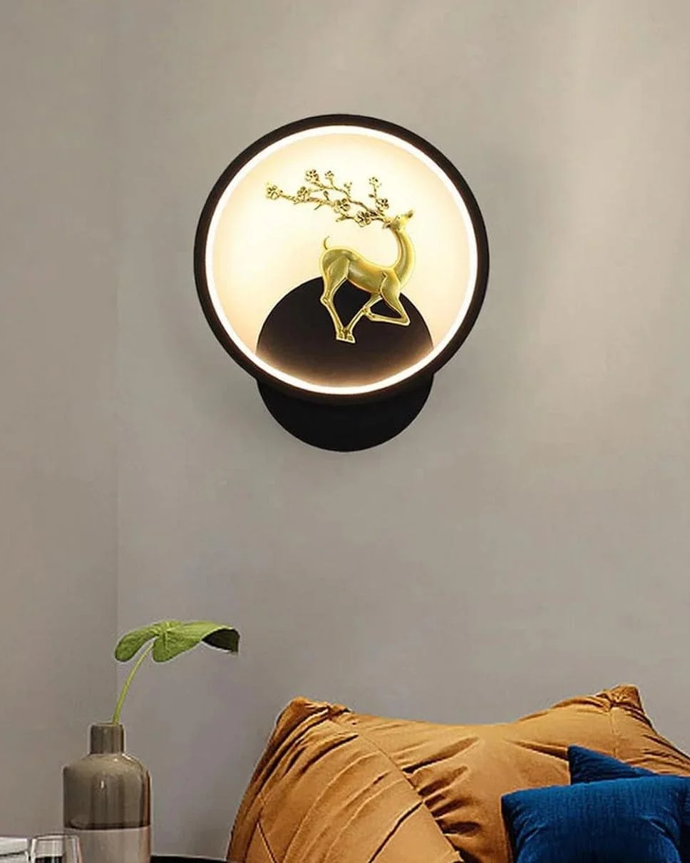 Black Round Deer Wall Lamp - Trichromatic