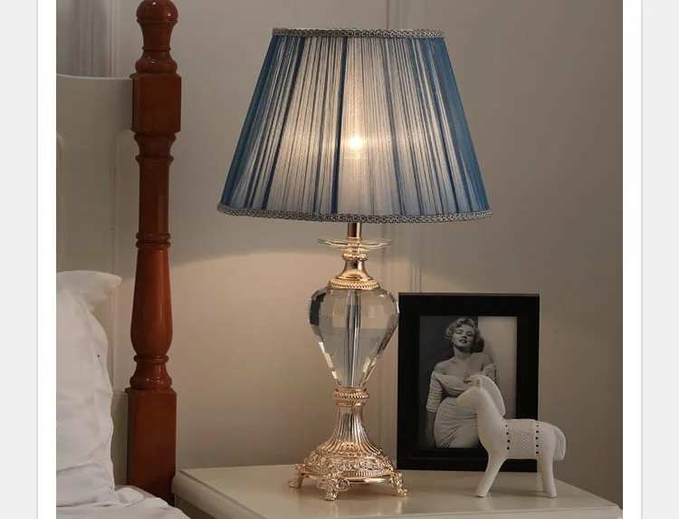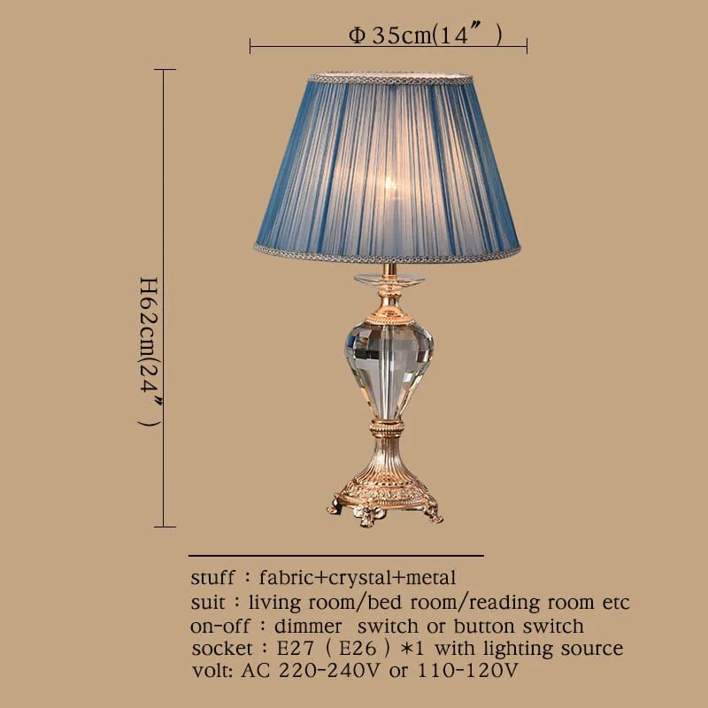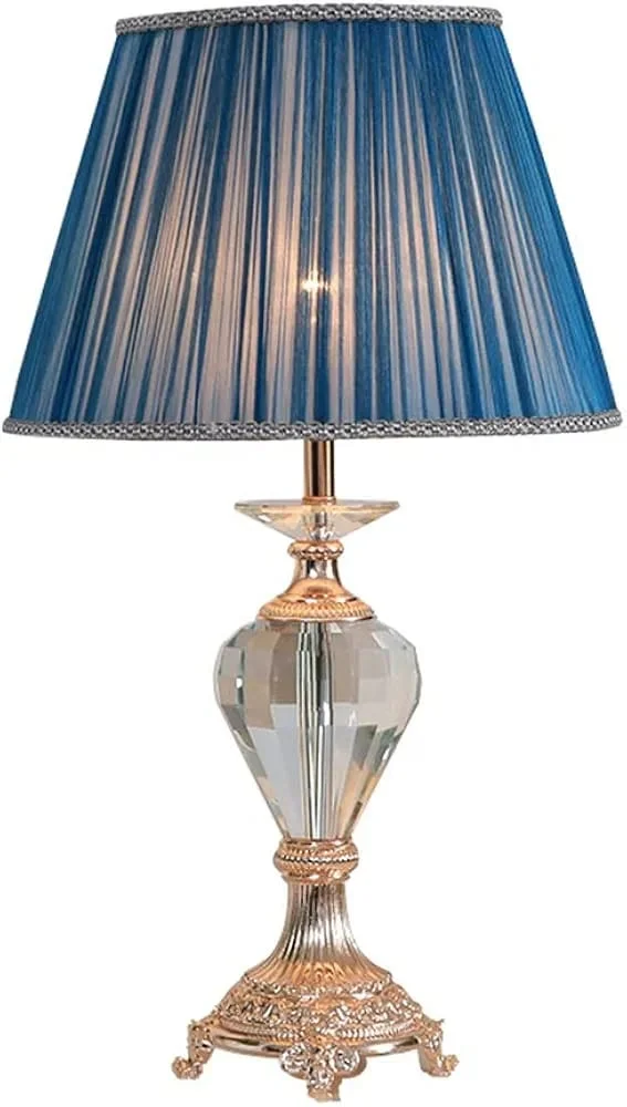 Blue Ocean Table Lamp with Pleated Fabric Shade and Crystal - Warm White