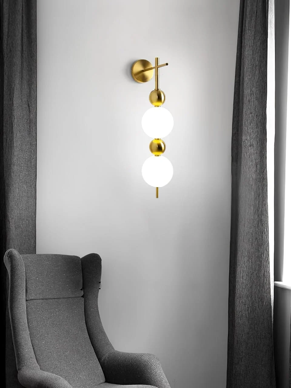 Elevate your living space with the Modern Acrylic Glass Balls Golden Finish LED Wall Lamp. This elegant lighting fixture, perfect for your living room, bedroom, or bedside, features a sleek golden finish and contemporary glass balls design. It provides a warm white, white, natural white glow that creates a cozy ambiance.