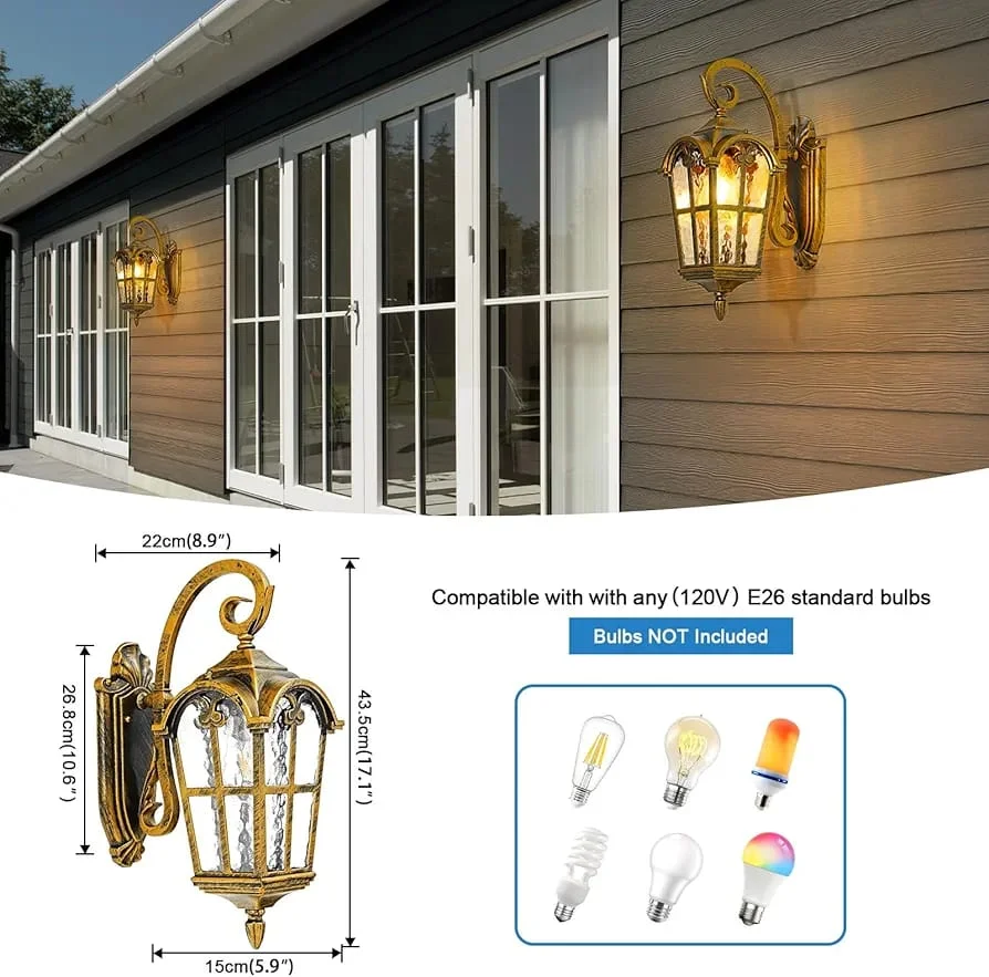 - Made of durable die-cast aluminum lamp body and glass shed body.