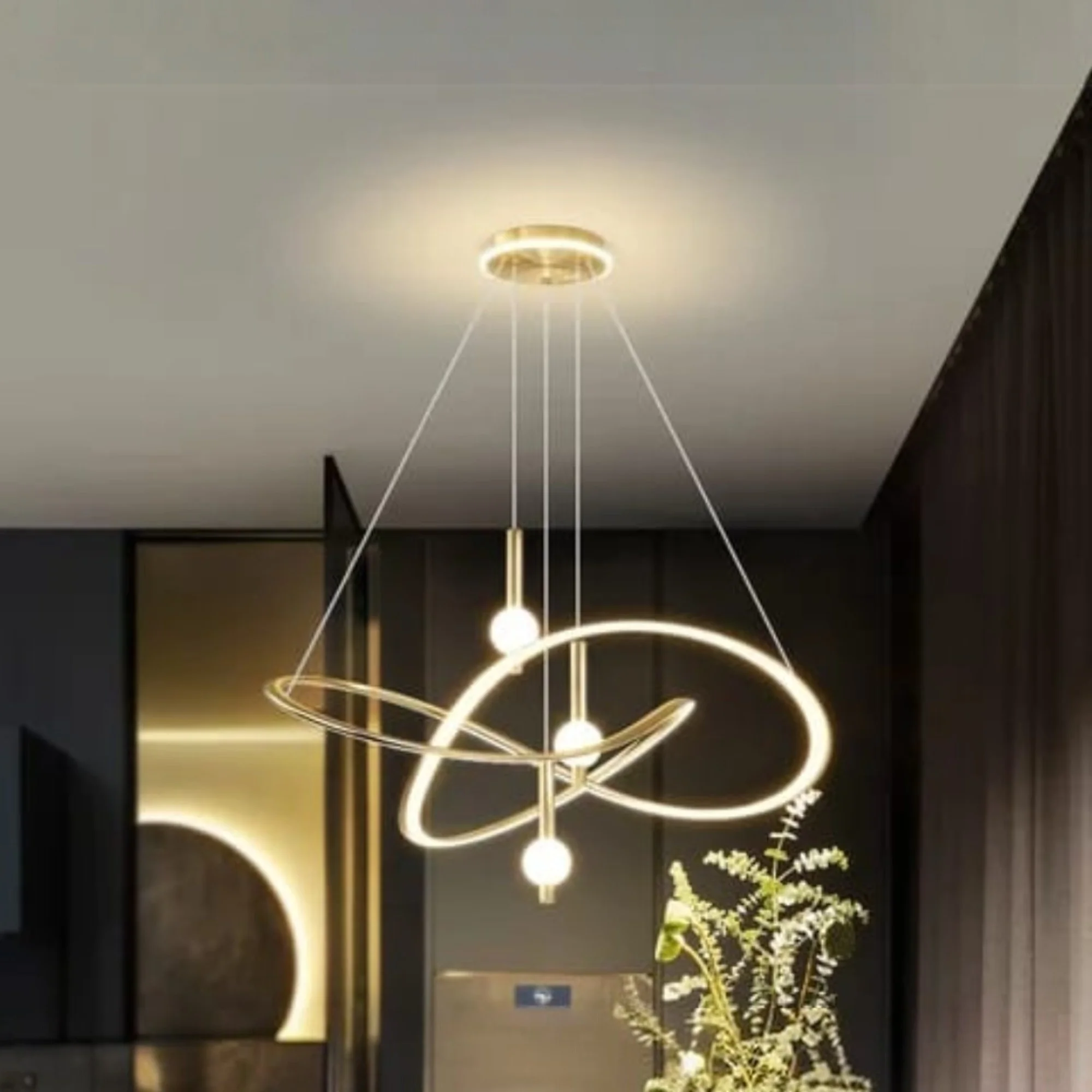 Celestial Charm Chandelier Golden Twisted Curl Ball Lights Chandelier - Tricolour
