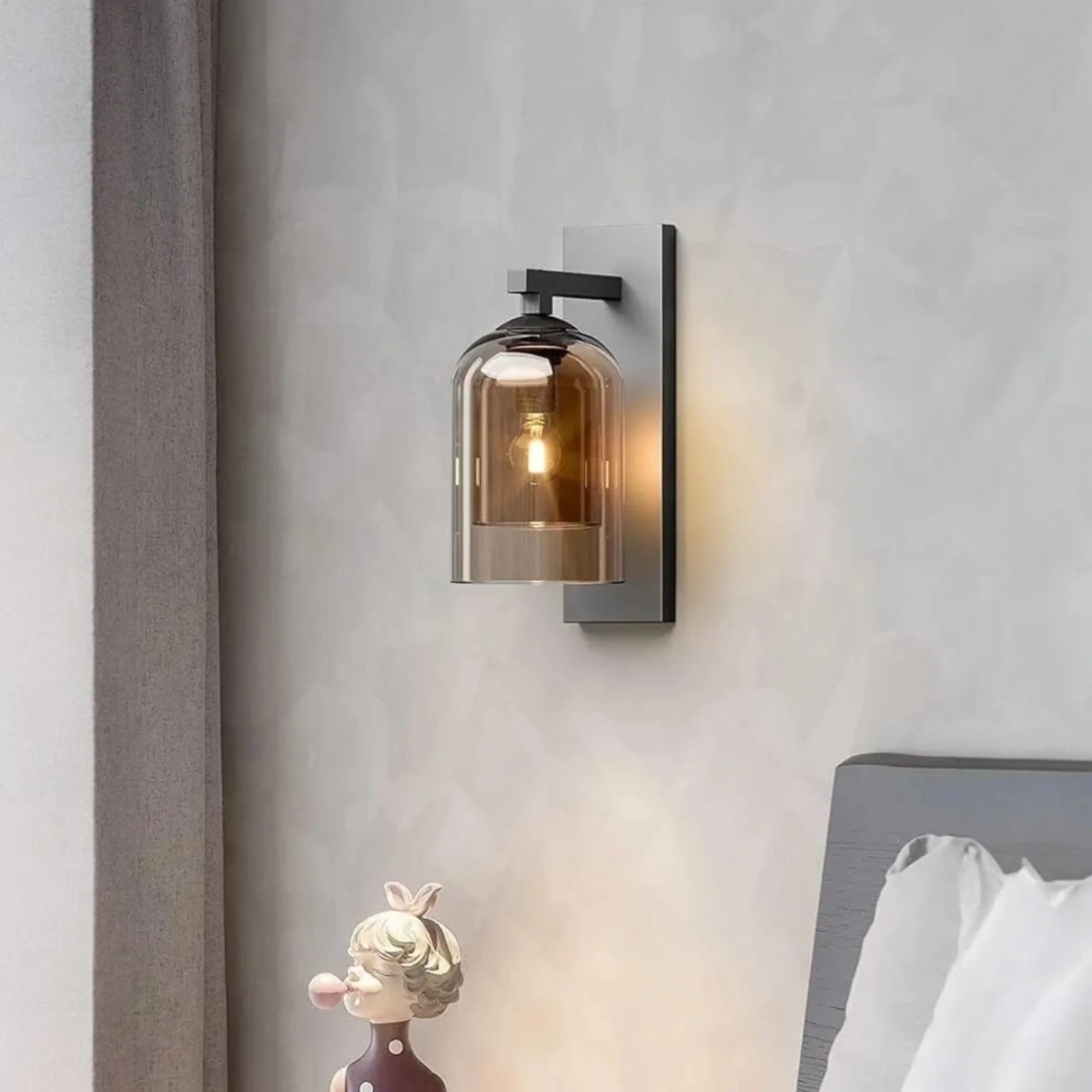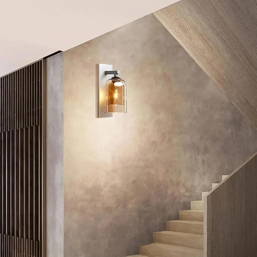 Champagne Wall Lamp Creative Down Amber Glass Grey LED Light - Warm White