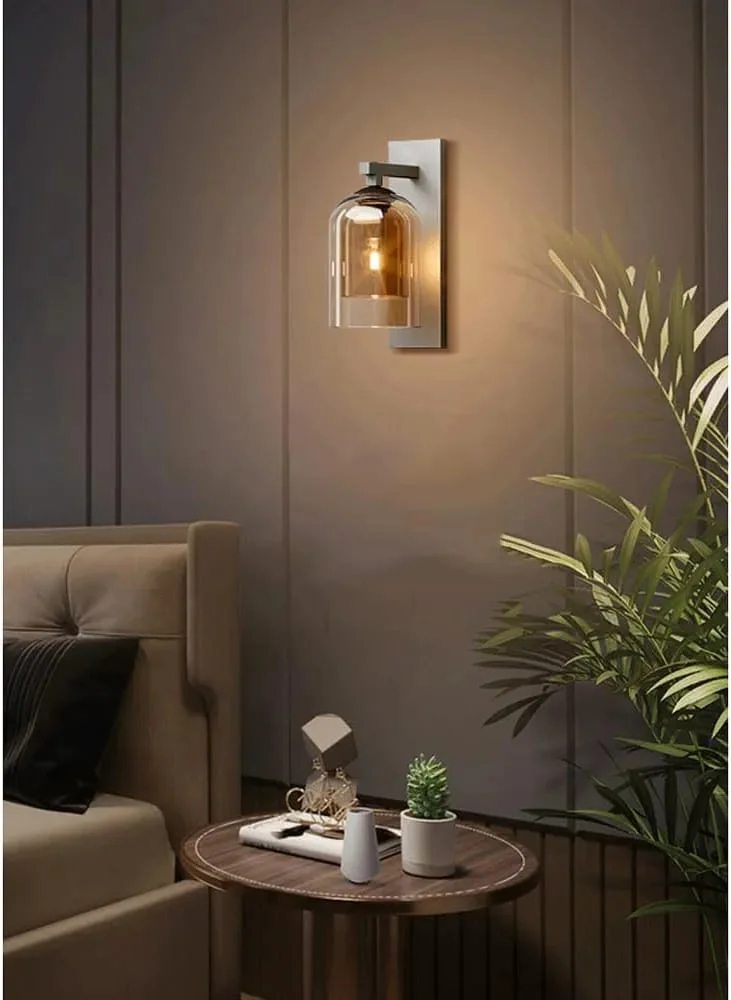 Elevate your living space with the Modern Down Amber Glass Grey Finish LED Wall Lamp. This elegant lighting fixture, perfect for your living room, bedroom, or bedside, features a sleek grey finish and contemporary glass design. It provides a warm white glow that creates a cozy ambiance.