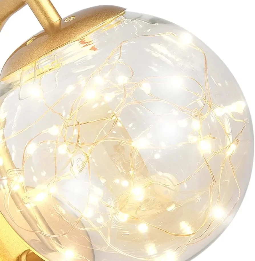 Elevate your living space with the Modern Glass Circular Shape Balls Golden Finish LED Wall Lamp. This elegant lighting fixture, perfect for your living room, bedroom, or bedside, features a sleek golden finish and contemporary glass balls design.