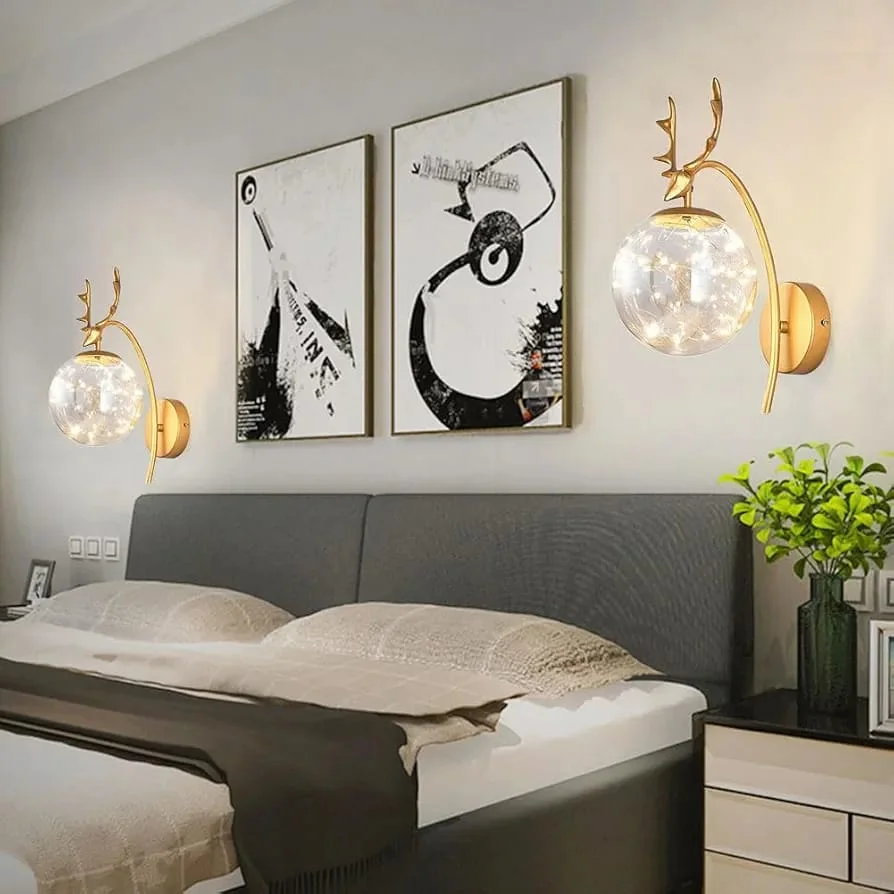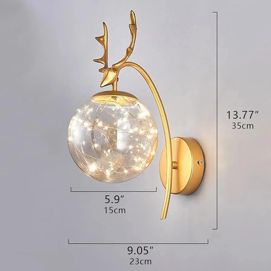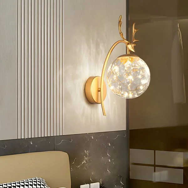 Clear Glass Ball Full Stary LED Deer Head Wall Lamp - Tricolour