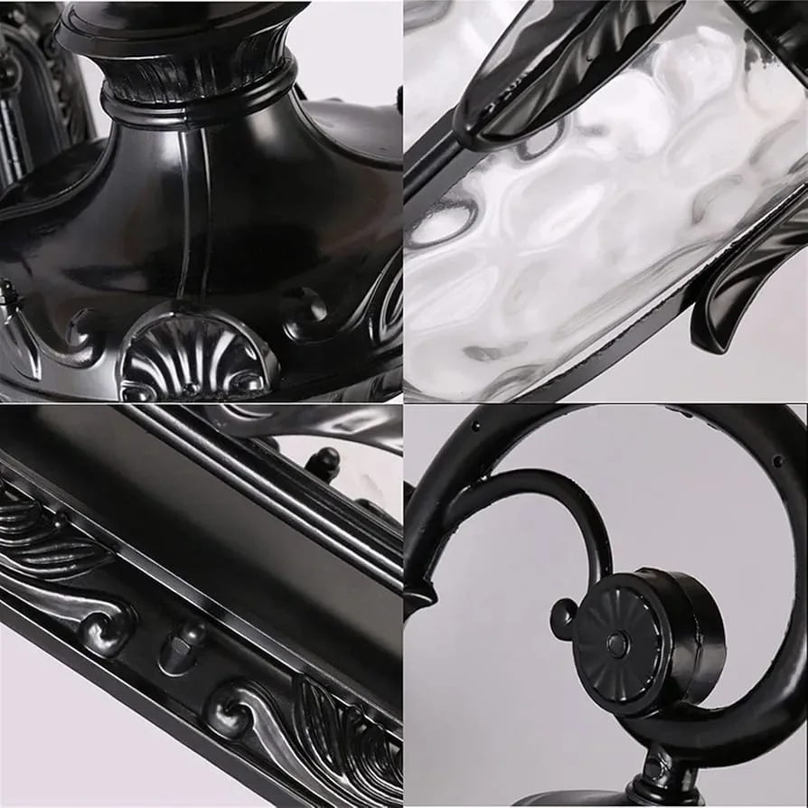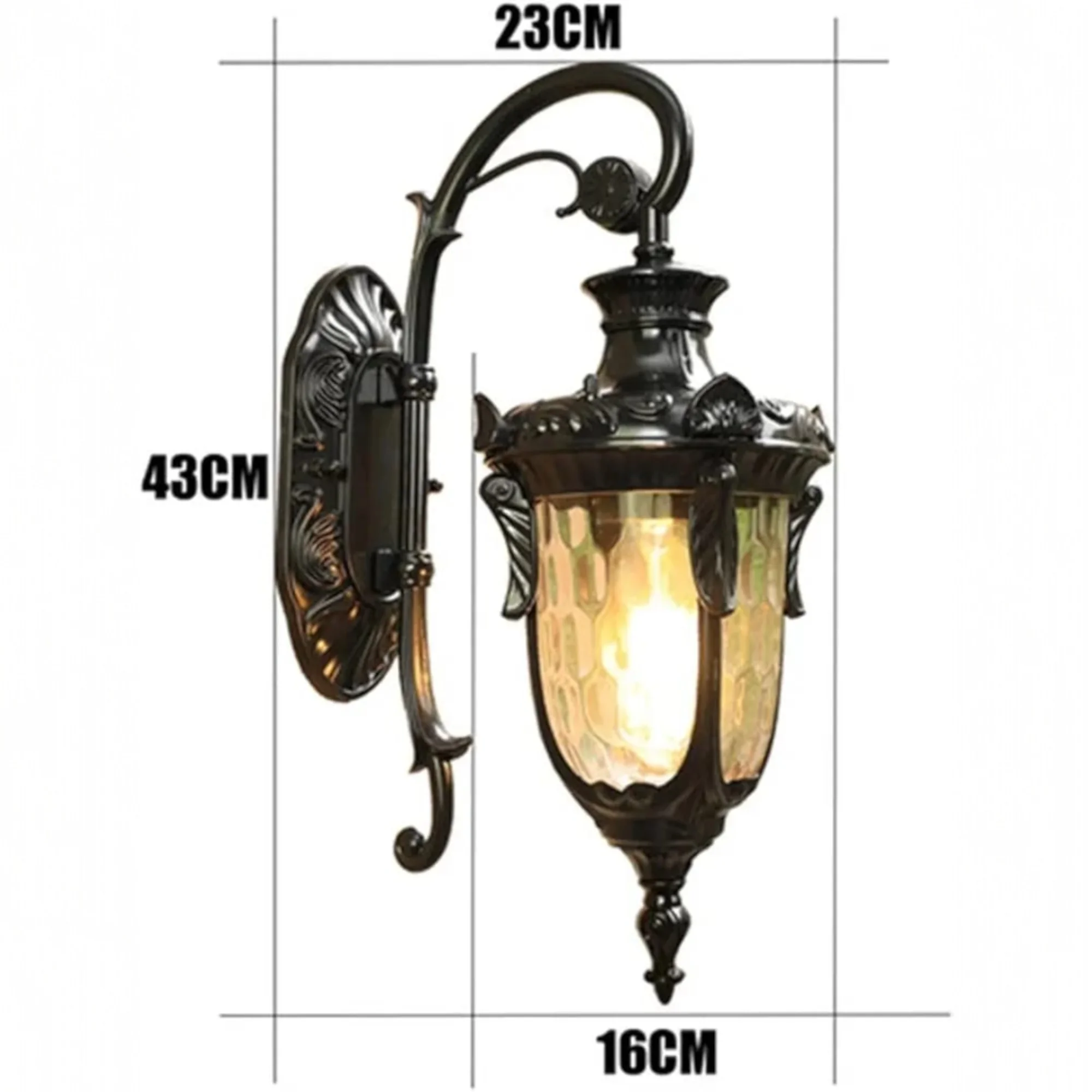 - Made of durable die-cast aluminum lamp body and glass shed body.