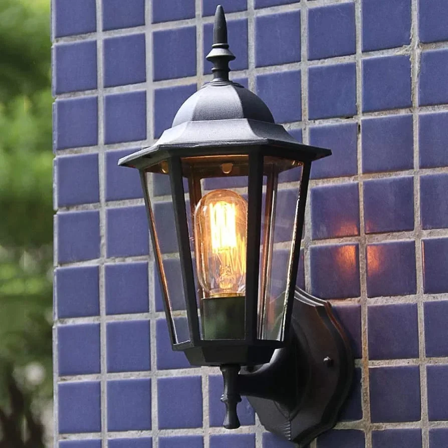 Black Decorative Outdoor Clear Glass Die Cast Aluminium Wall Lamp - Warm White