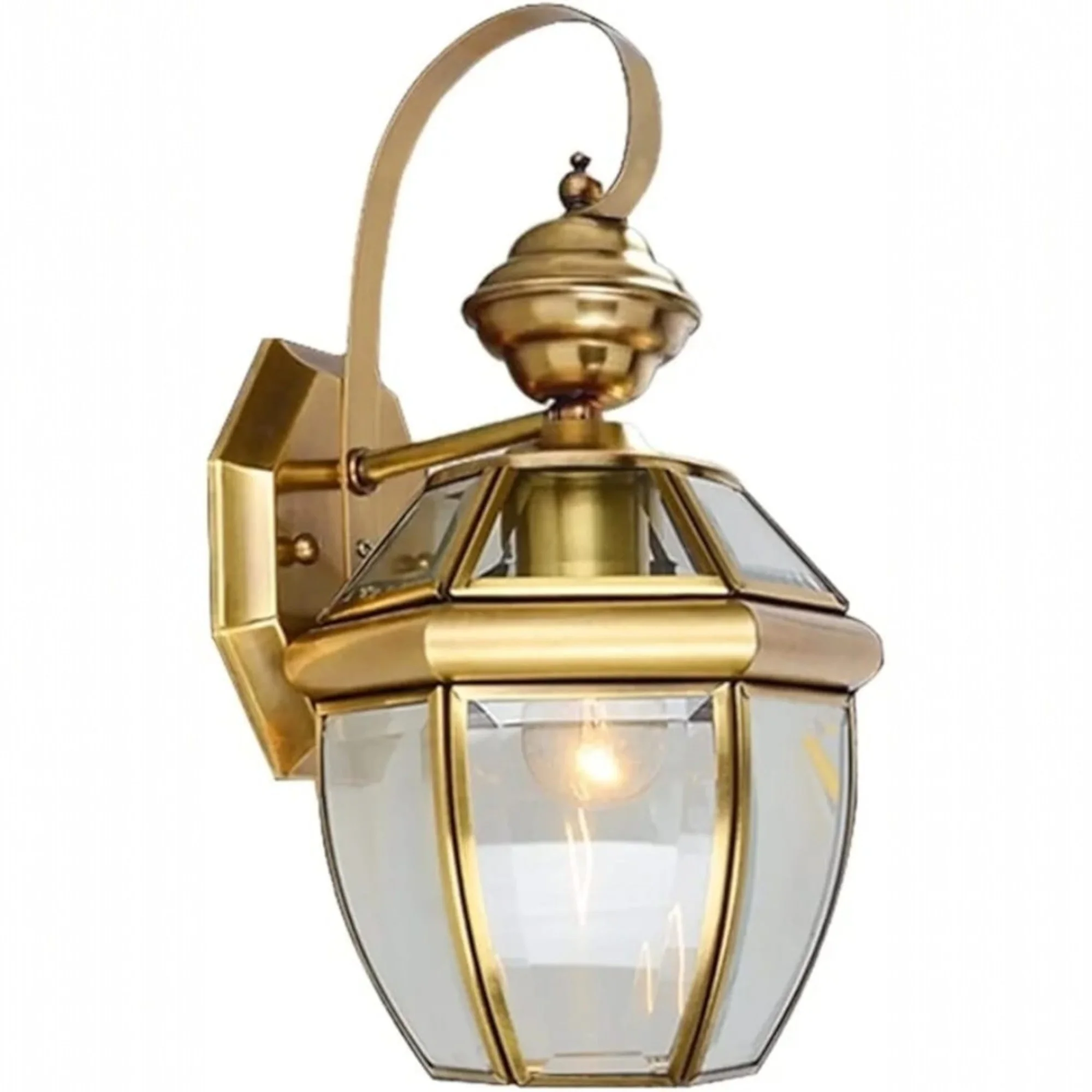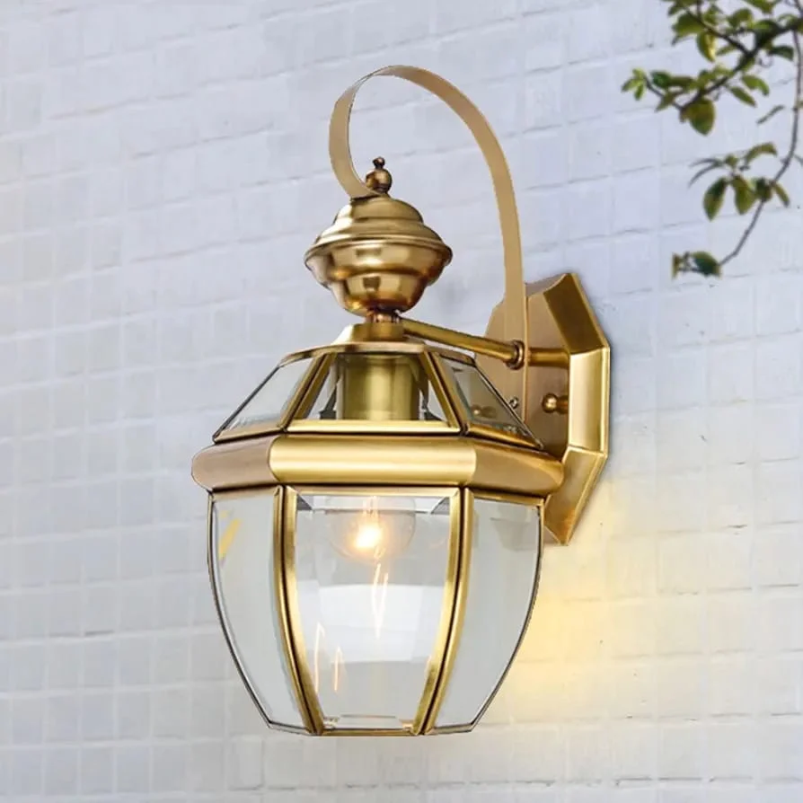 Clear Glass Die Cast Golden Brass Wall Lamp - Warm White