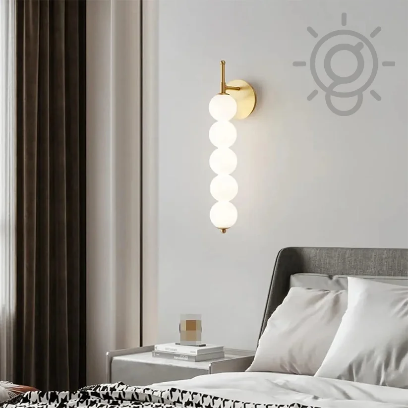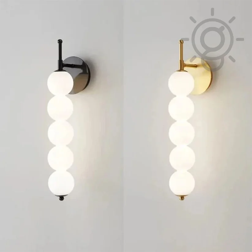 Elevate your living space with the Modern frosted Glass 5 Balls Gold Finish LED Wall Lamp. This elegant lighting fixture, perfect for your living room, bedroom, or bedside, features a sleek black finish and contemporary glass balls design. It provides a tricolour glow that creates a cozy ambiance according to your mood.