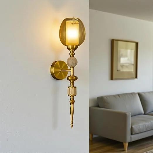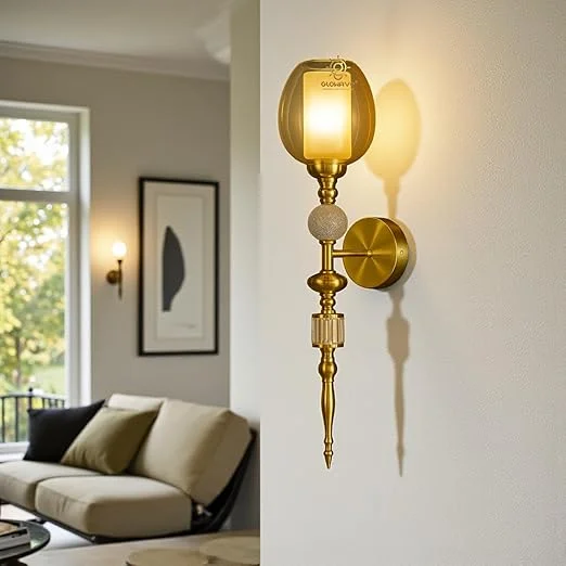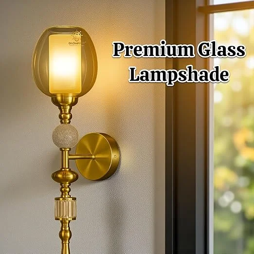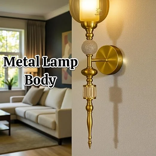 - Stylish Design: Amber glass lampshade with a golden finish metal body