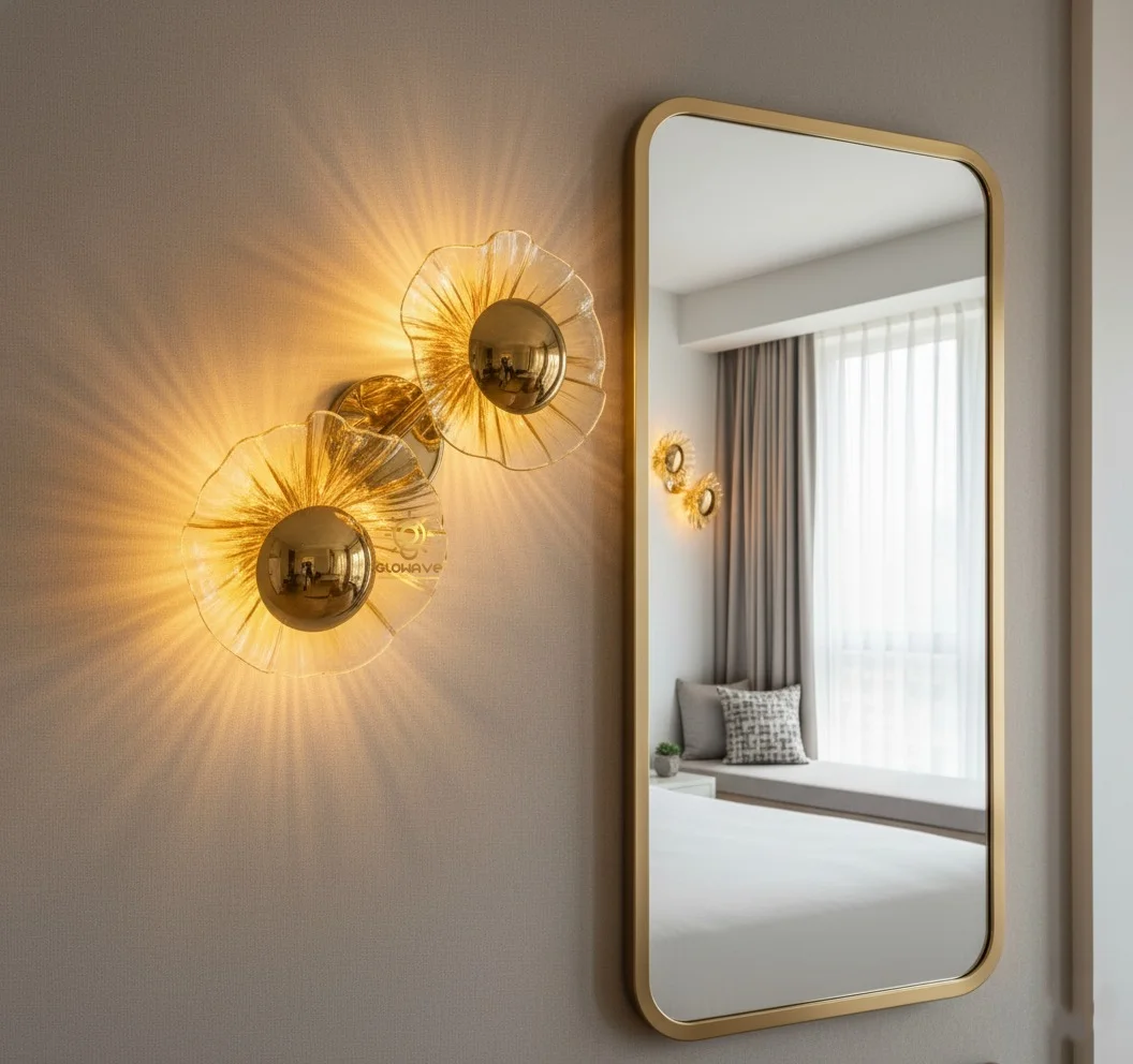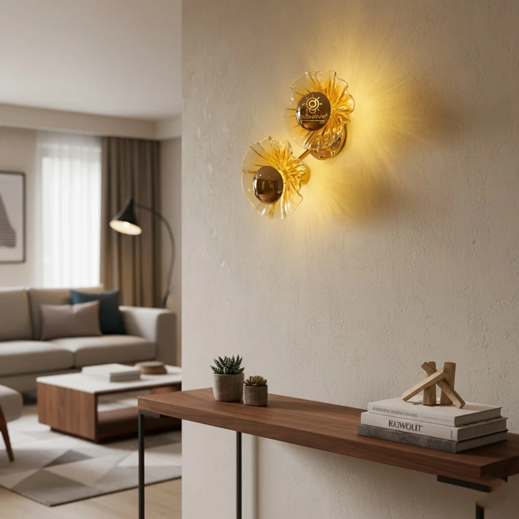 Elevate your living space with the Modern Double Amber Glass Golden Finish LED Wall Lamp. This elegant lighting fixture, perfect for your living room, bedroom, or bedside, features a sleek golden finish and contemporary glass balls design. It provides a warm white glow that creates a cozy ambiance.